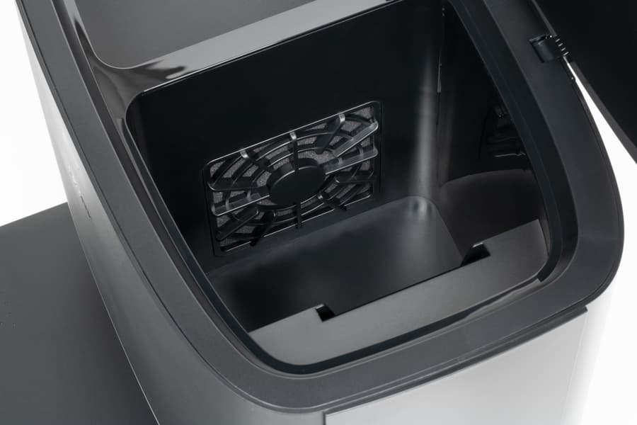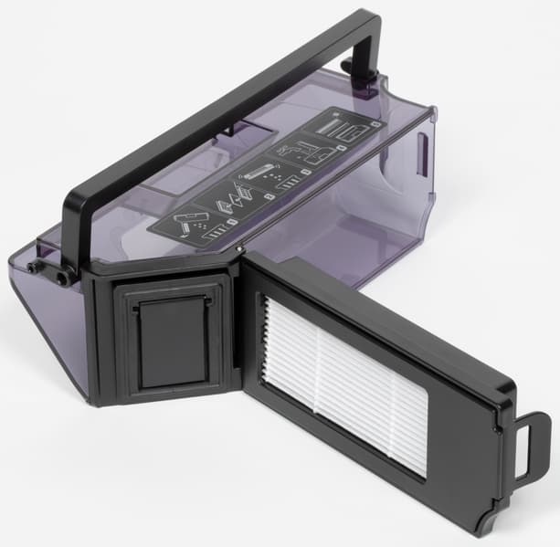 Чтобы при извлечении контейнера не высыпался мусор, отверстие подачи пыли закрывается откидной пластиковой шторкой. Для опустошения контейнера используется специальный порт, автоматически закрывающийся подпружиненной пластиковой заглушкой. Сверху на контейнере присутствует наклейка с руководством по его очистке.