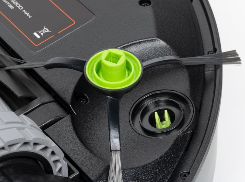 Немного странно, но у нашего робота используется две боковые щетки. Не секрет, что многие топовые модели обходятся всего одной, и это никак не сказывается на качестве уборки. Впрочем, мы все равно продолжаем думать, что две — лучше, чем одна.