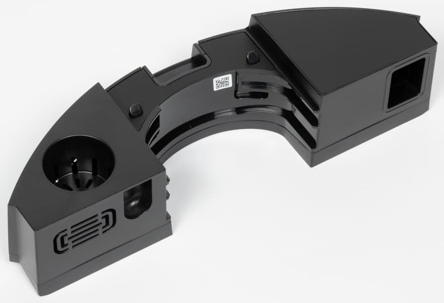 По сути, это переходник, через который пыль и мусор будут сбрасываться внутрь док-станции. Однако тут присутствует один необычный момент: круглое гнездо (на фото слева) предназначено для установки аромакапсул, благодаря которым пылесос будет не только убирать пыль, но и испускать вокруг себя благоухание.