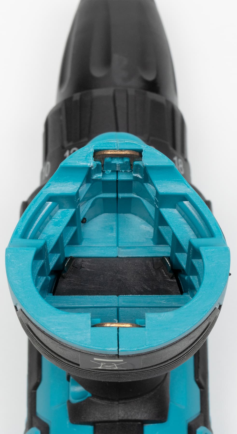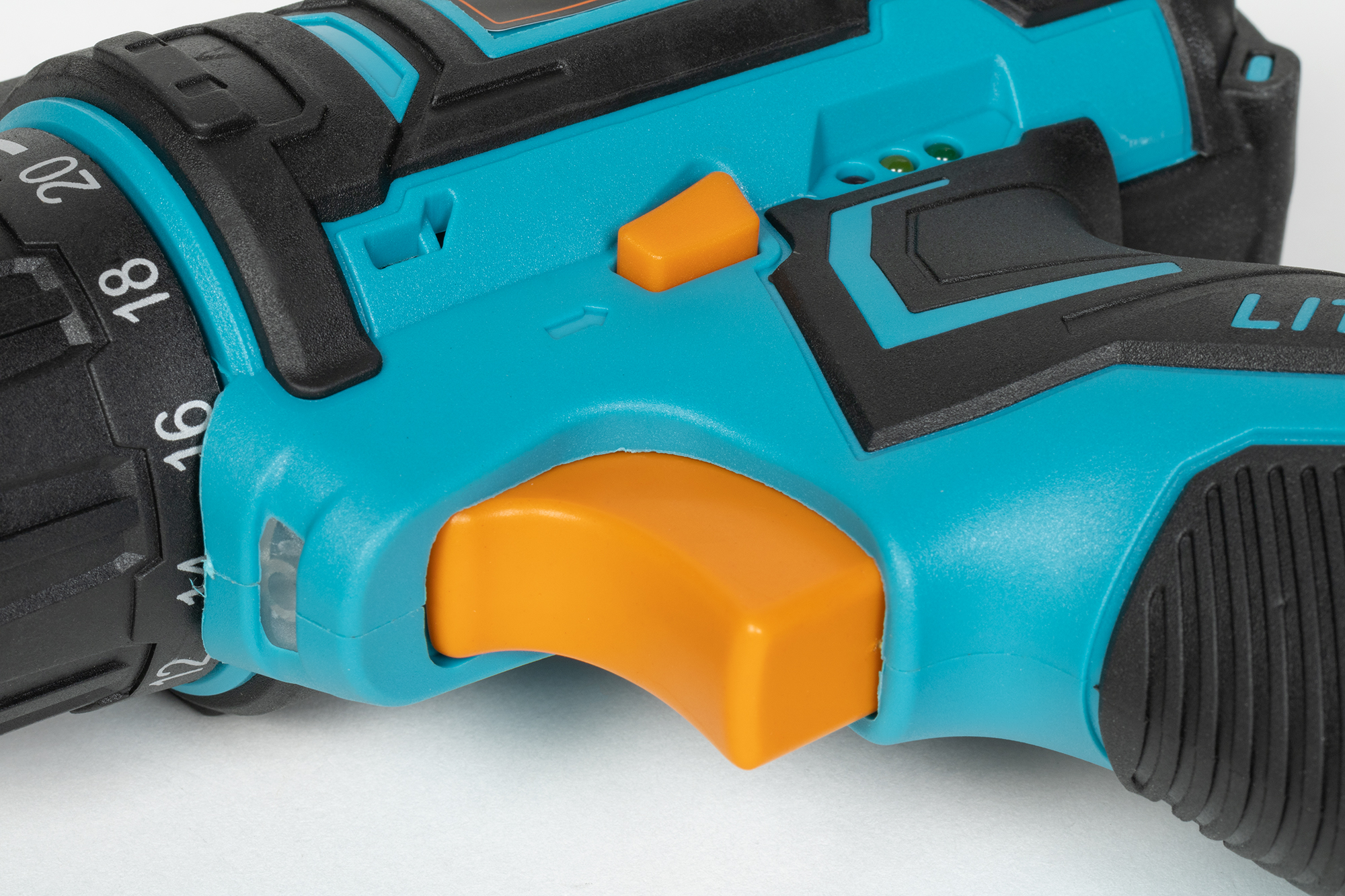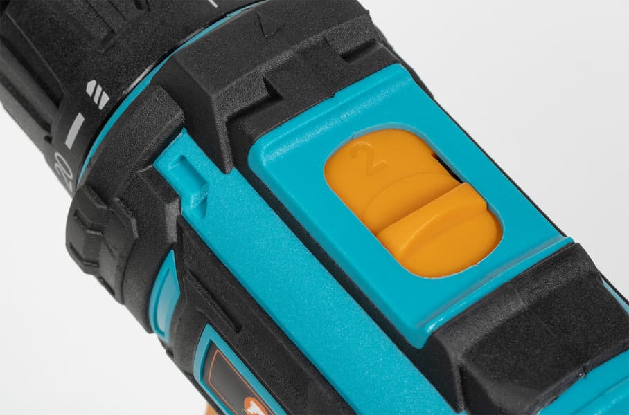 Муфта с делениями регулирует крутящий момент, каждое из 18 делений четко фиксируется со слабым щелчком. Крайнее деление переводит инструмент в режим сверления, когда редуктор не задействуется и «трещотка» отключается. Диапазоны скоростей переключаются стандартным ползунком, расположенным сверху.