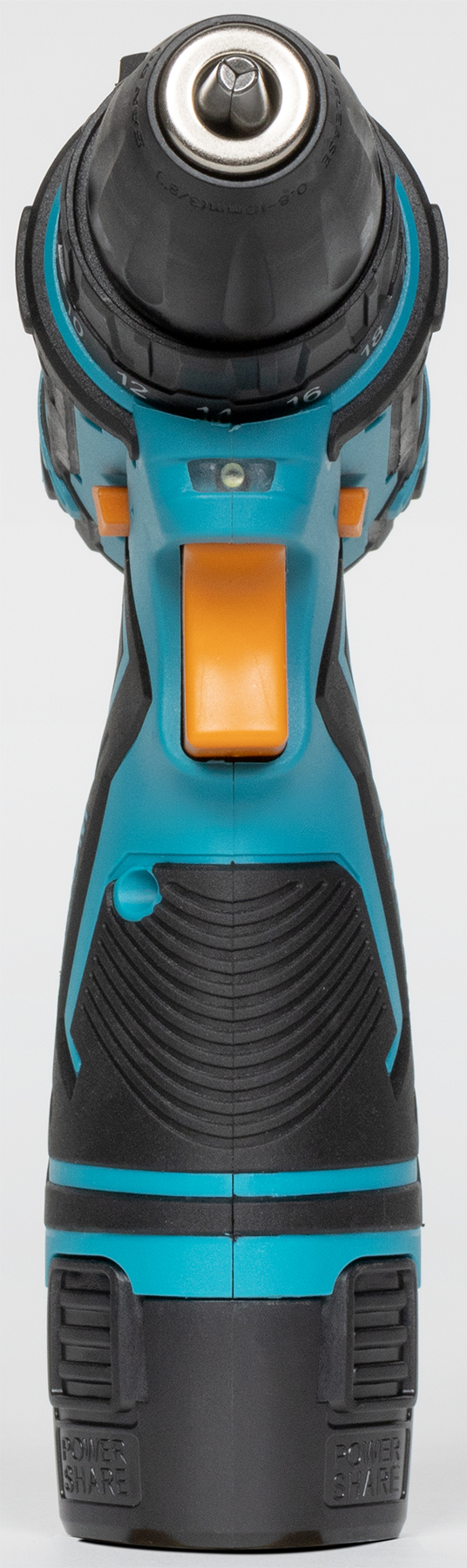 Встроенный фонарик, который расположен под патроном, светит очень тускло. Разве что для полной темноты подходит. Яркость его так низка, что свет можно без боязни направить в глаза — даже не прищуритесь. Есть даже ощущение, что индикаторы уровня заряда аккумулятора светят ярче этого встроенного фонарика. Они действительно слепят, особенно крайний, зеленый который. И кстати, светят совершенно зря. Эти диоды играют исключительно декоративную роль, не отображая истинный заряд батареи. Пока батарея полностью не иссякнет — они так и будут светиться, все три. Где-то мы подобное уже видели... И совсем недавно. Ах, да! Deko DKCD20FU-Li!
