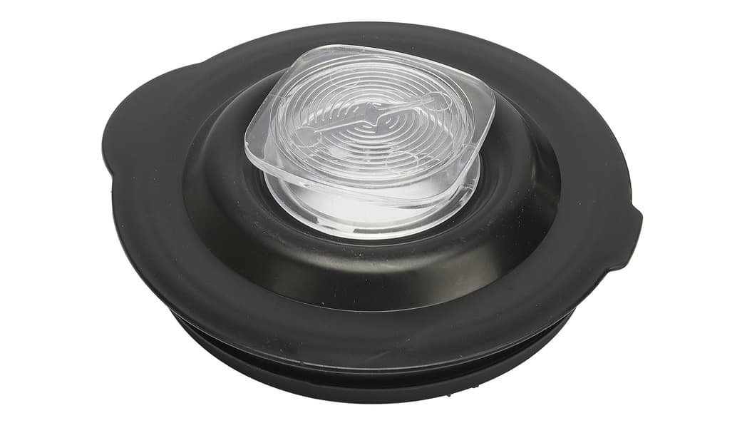 Крышка кувшина черного цвета, с дополнительной прозрачной пластиковой крышкой по центру. Меньшая крышка извлекается поворотом против часовой стрелки, после чего через отверстие можно добавить продукты, не снимая основную крышку.