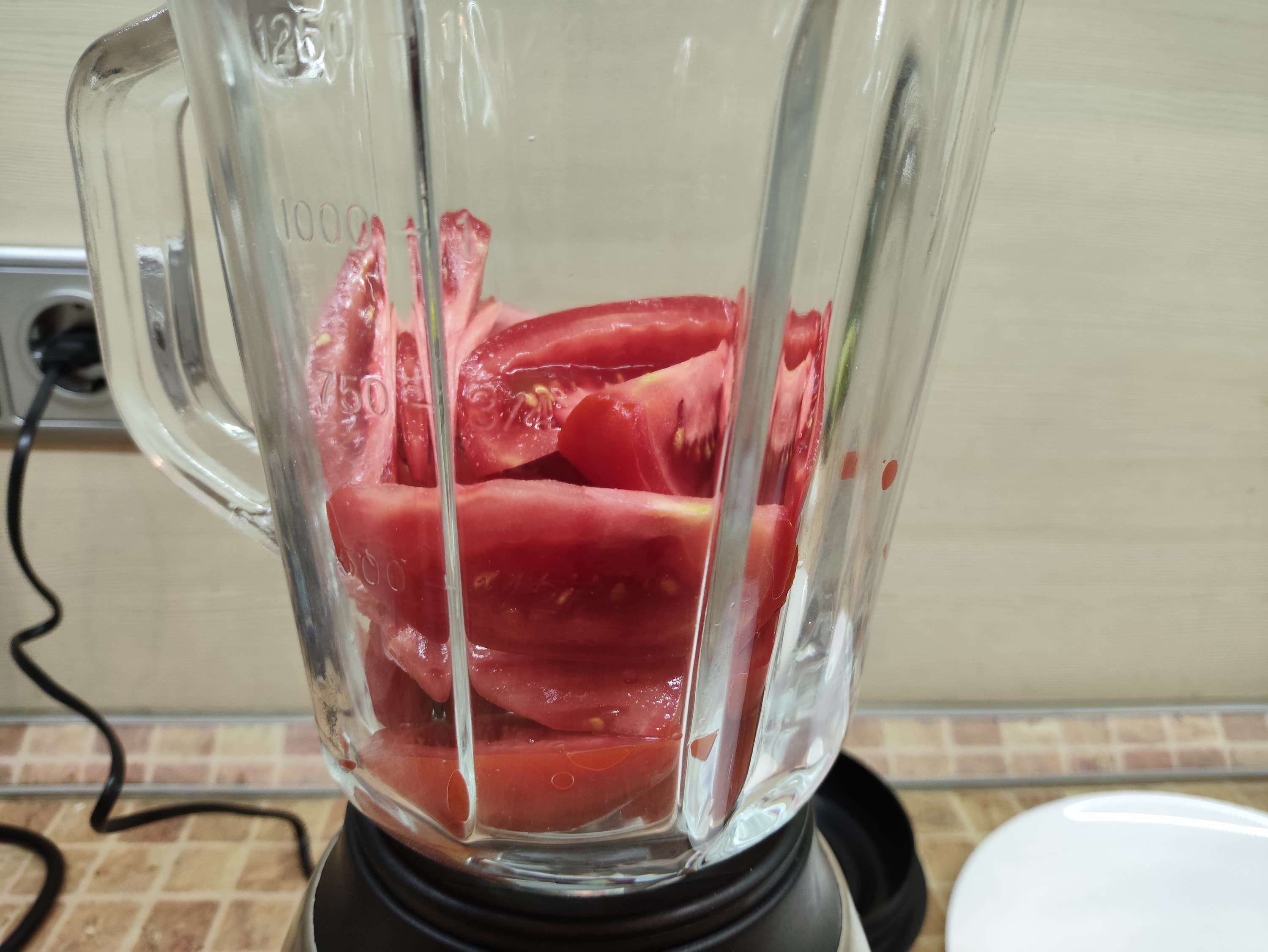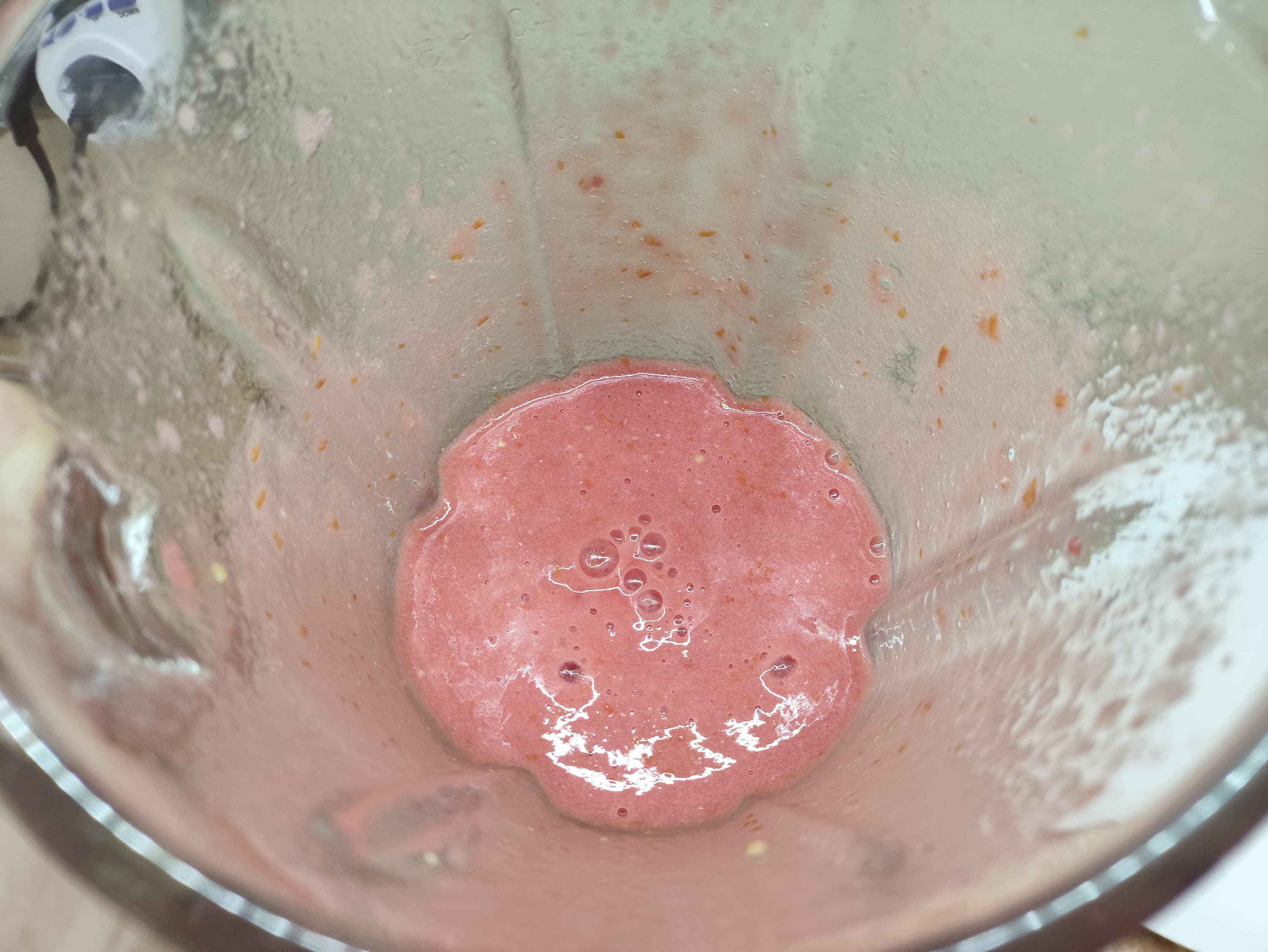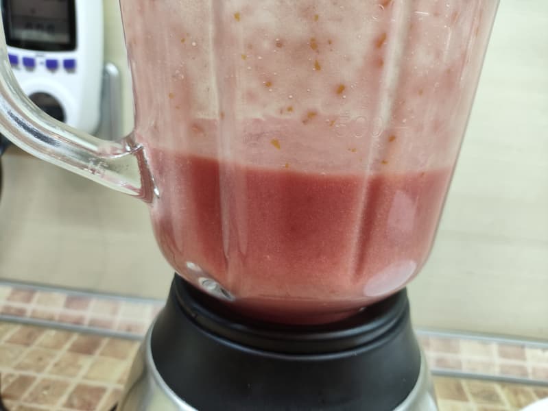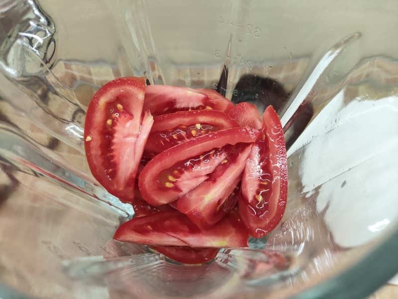 К нашему удивлению, безымянный блендер справился с задачей без каких-либо видимых усилий. На отлично! Мы получили однородную томатную смесь...
