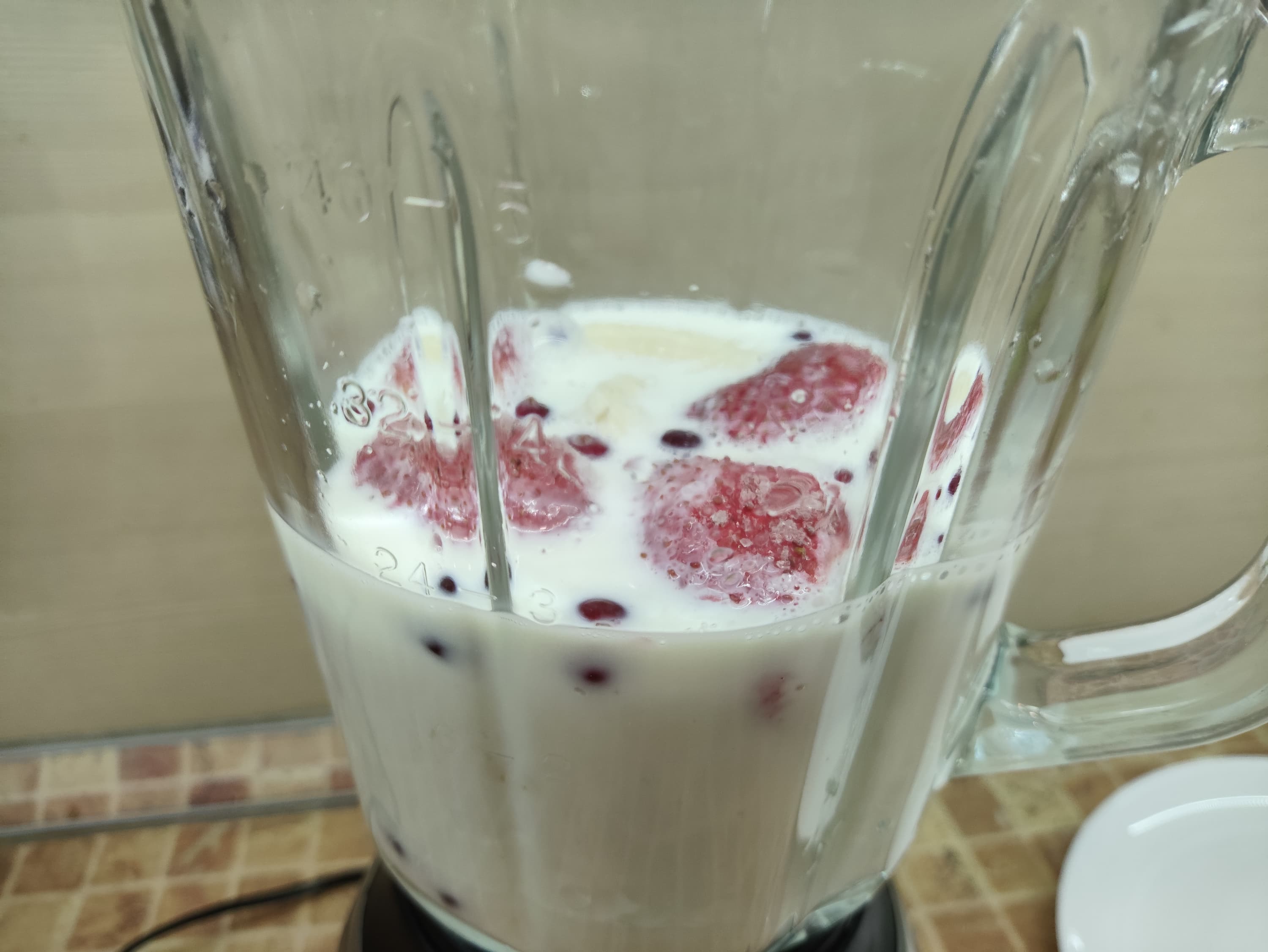 Залили всё молоком, поместили в чашу блендера...