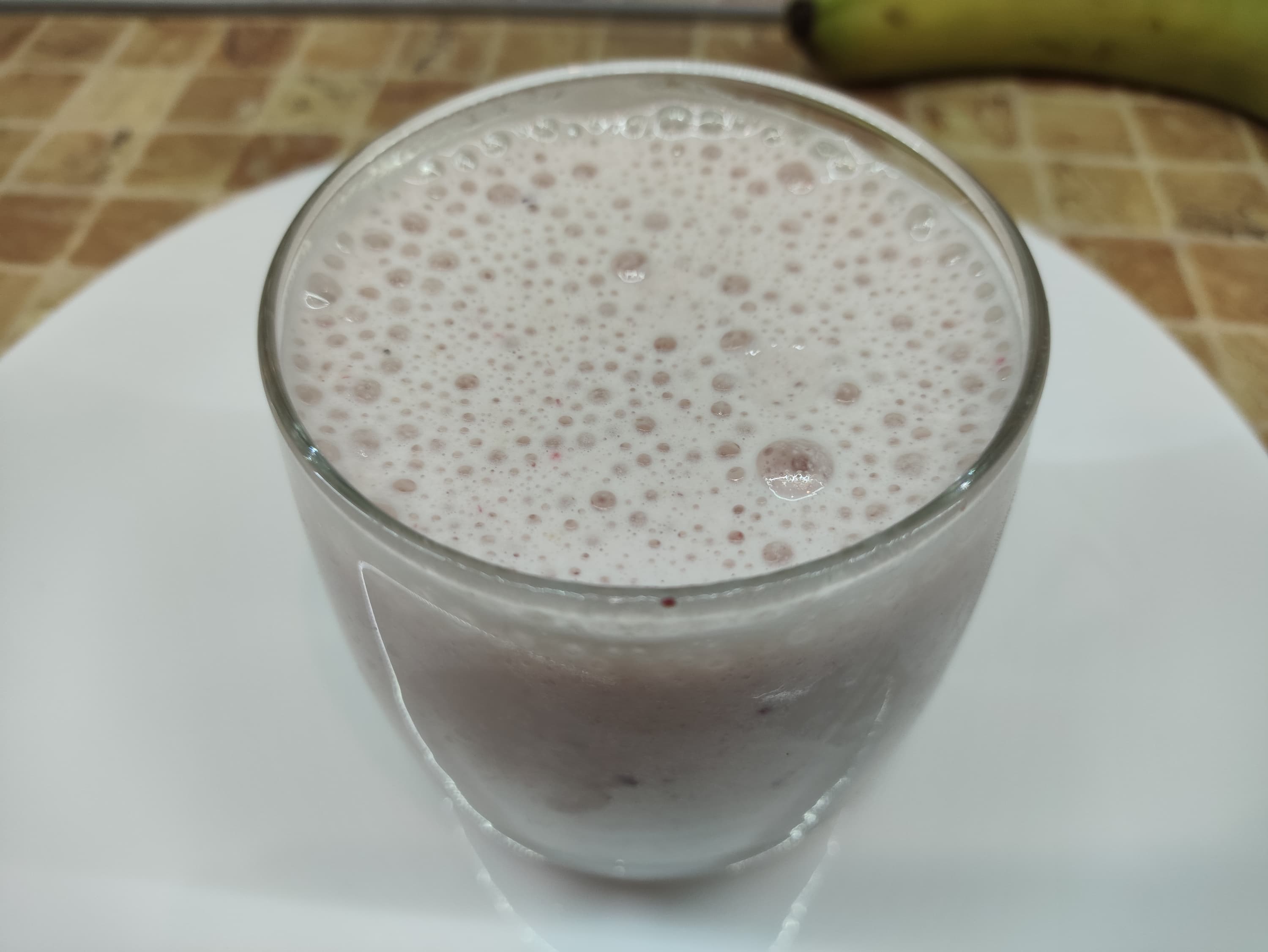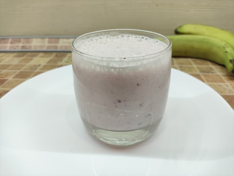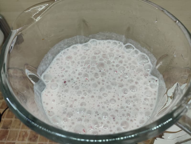 Буквально за 30 секунд мы получили однородную субстанцию с большим количеством воздушных пузырьков — больше похожую на молочный коктейль, чем на собственно смузи.