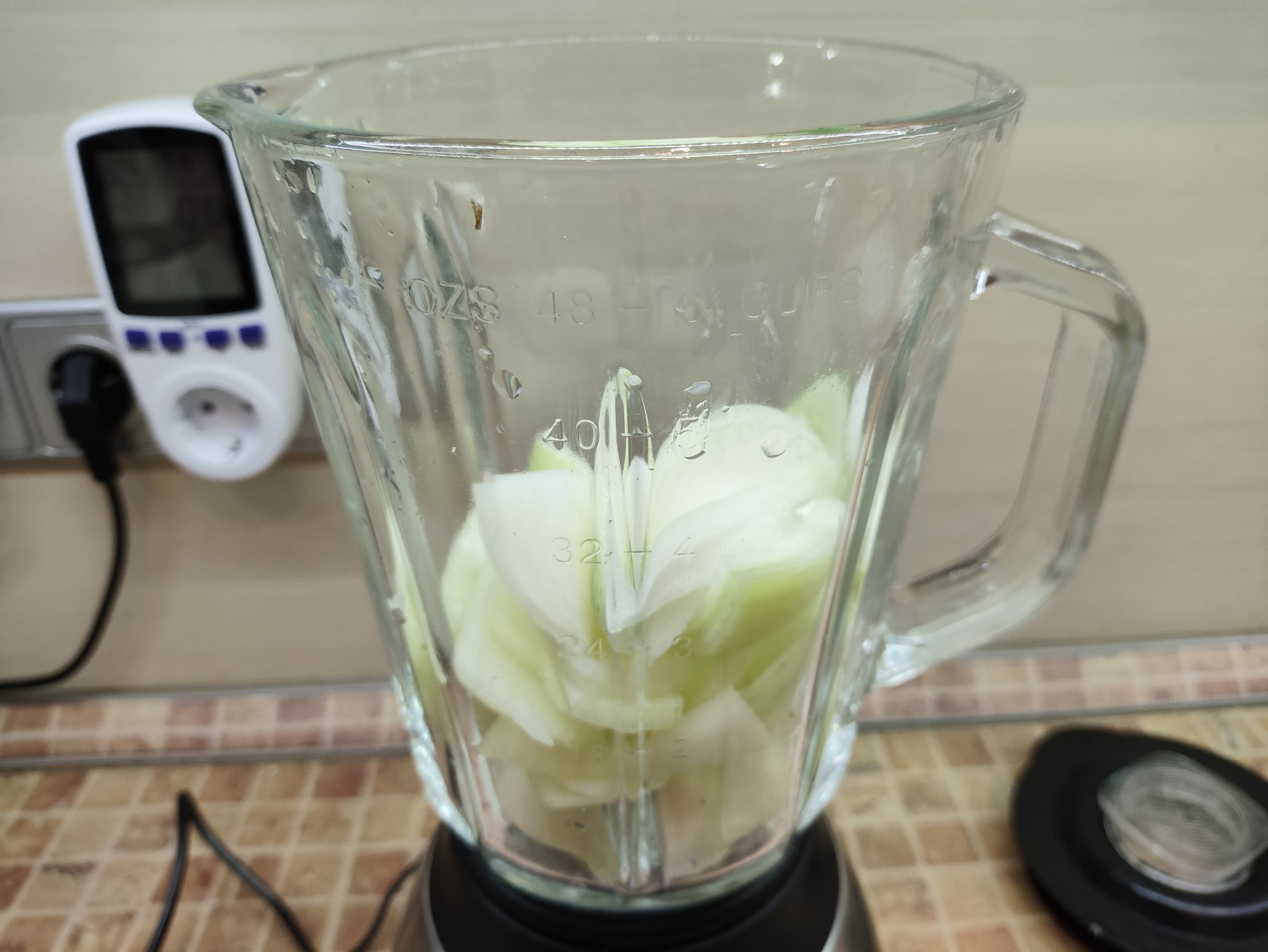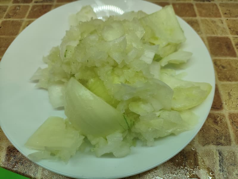 Попробуем чуть усложнить задачу. Поместим в чашу блендера нарезанный лук.