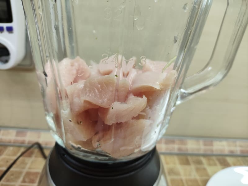 Дадим блендеру по-настоящему сложную задачу: измельчим полкило куриной грудки.