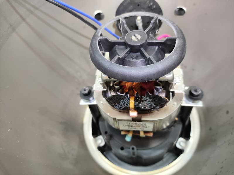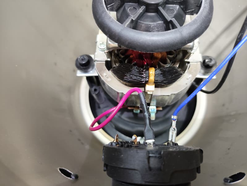 Оплетка мотора приобрела характерный подгоревший вид. Очевидно, у нашего блендера нет защиты от перегрева (перегрузка при измельчении лука очевидно невозможна).
