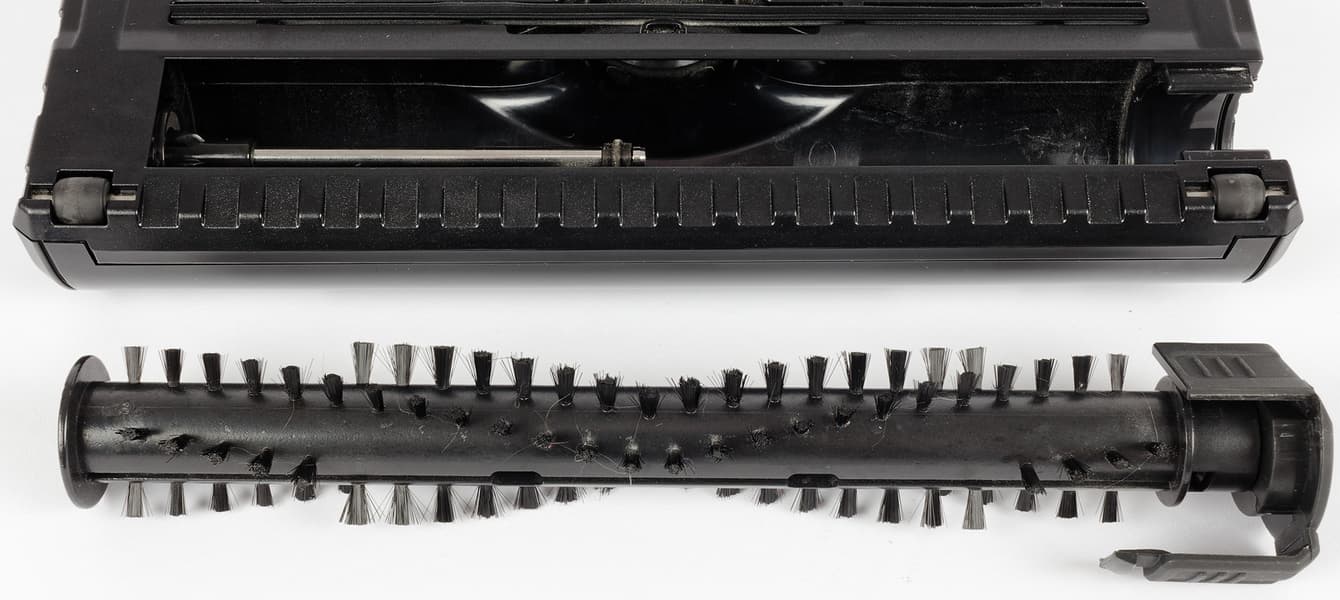 Насадки надо разобрать, предварительно отсоединив от пылесоса. Щеточный валик вынимается после разблокировки, с него надо обобрать мусор, при необходимости разрезав ножницами длинные волосы или волокна. Специального устройства для очистки щетины у этого пылесоса нет.