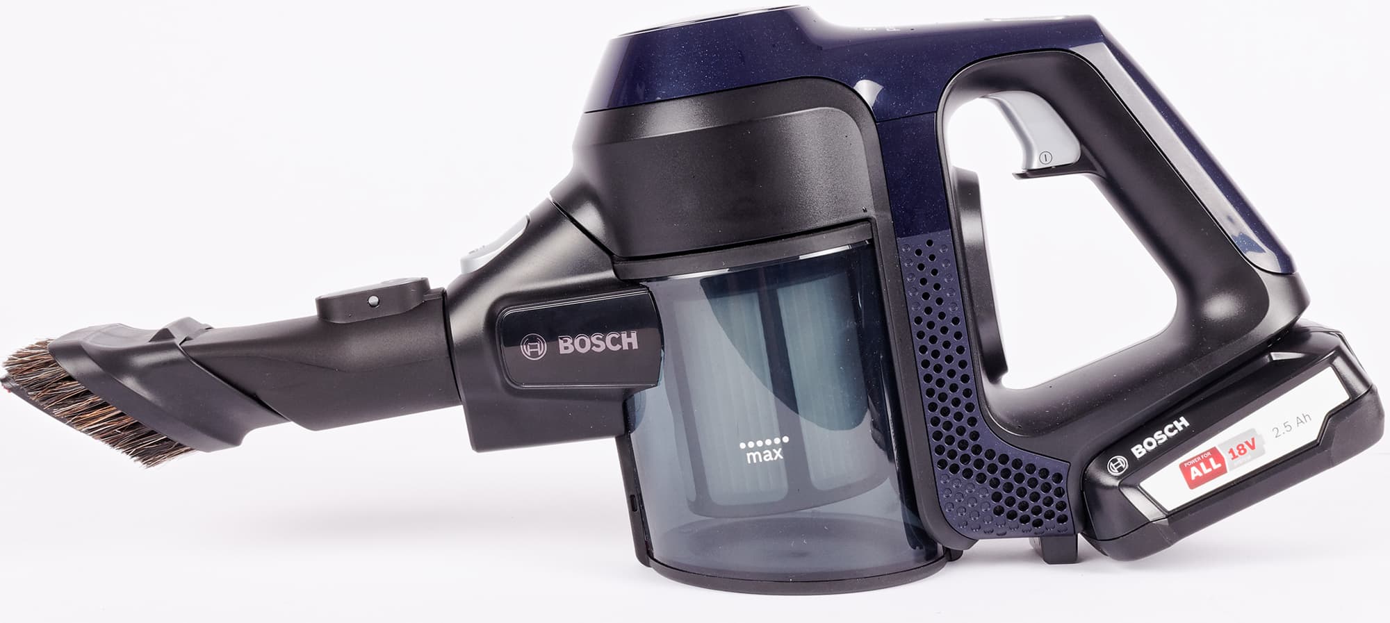 Вертикальный пылесос Bosch BCS611P4A лучше всего оценят владельцы домашних мастерских или садоводы, уже имеющие электроинструменты стандарта Bosch Power For All 18V или еще только собирающиеся приобрести ручную и садовую технику этого производителя. Возможность использовать единый стандарт аккумуляторов и в шуруповерте, и в газонокосилке, и в домашнем пылесосе крайне удобна. Использование отдельной зарядной станции для быстрой зарядки аккумулятора или дополнительный стандартный источник питания позволят не прерывать уборку надолго даже в случае, если она затянулась.