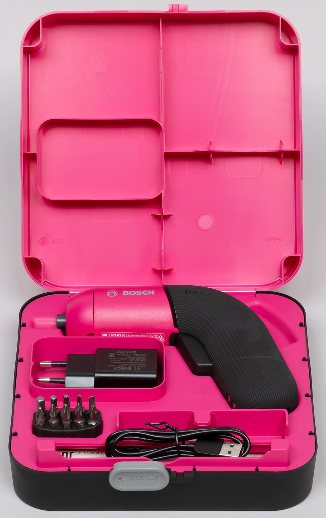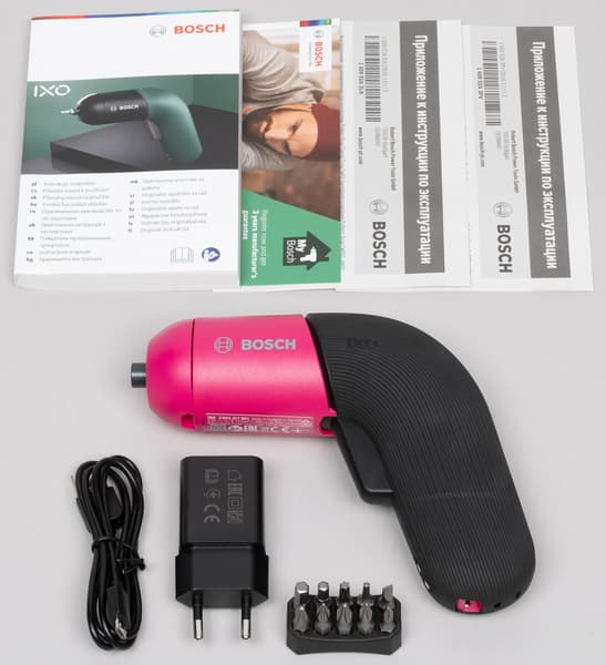 В дополнение к безупречности комплект содержит зарядное устройство, кабель USB—Micro-USB, набор из 10 отверточных бит и небольшую библиотеку, которая состоит из мультиязычной инструкции и листовок.