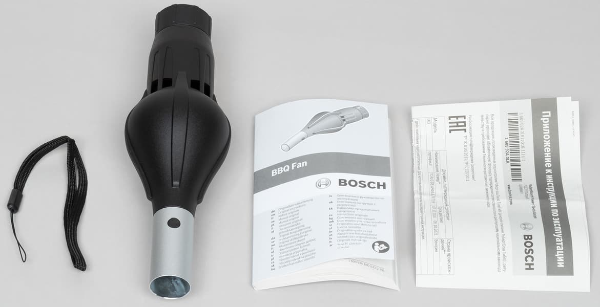Снова знакомая комплектность: насадка и поваренная книга-руководство. И еще ремешок, которым шуруповерт с насадкой фиксируется на руке, чтобы в разгар пикника не выронить всю конструкцию на горящие угли.
