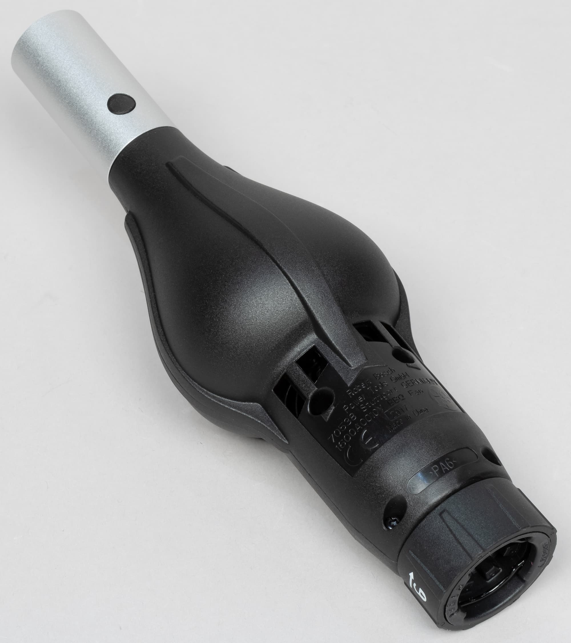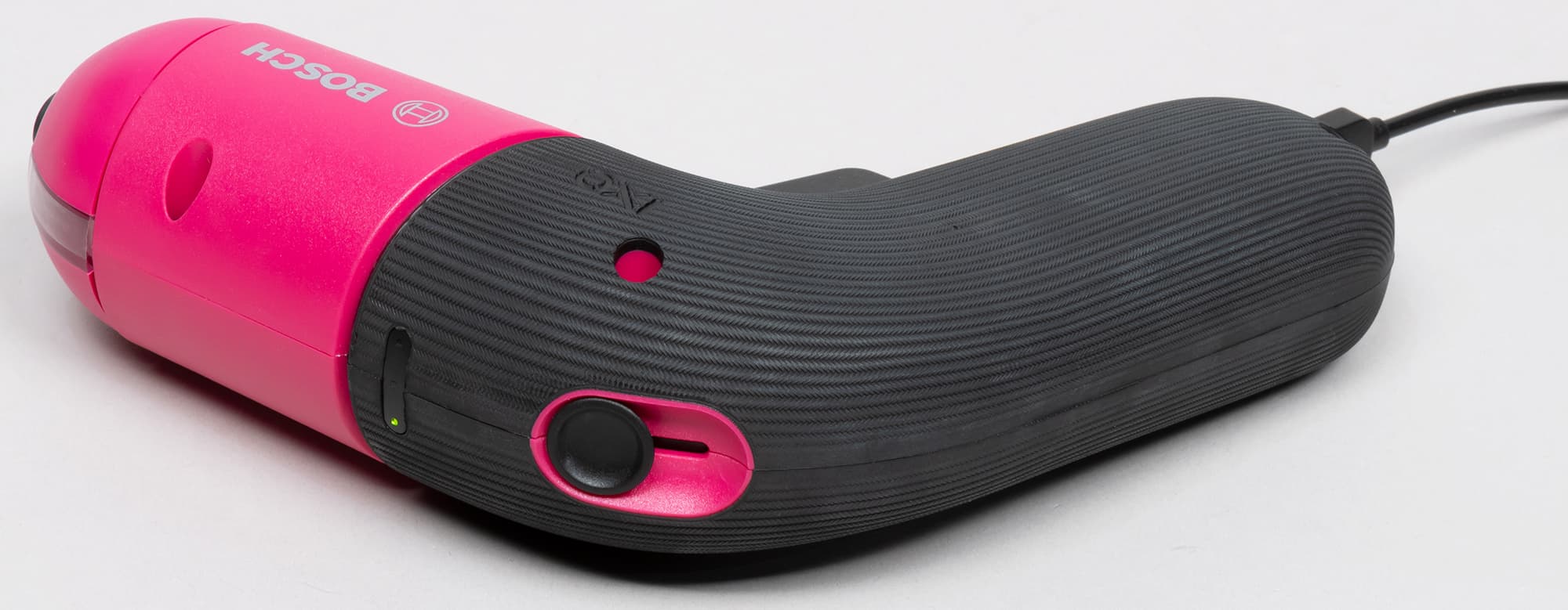 Размеры и форма инструмента намекают на использование нежной маленькой ручкой. Женской. Но это не точно. Что касается материала, которым покрыта рукоятка — его фактура необычна, на ощупь напоминает прорезиненную ткань. Удлиненная кнопка включения позволяет осуществлять нажатия не только указательным пальцем, но и средним. Наконец, вес: 350 граммов. Ощутить такой вес в руке — оно, конечно, нетрудно. Но чтоб рука устала от этого? Сильно вряд ли.