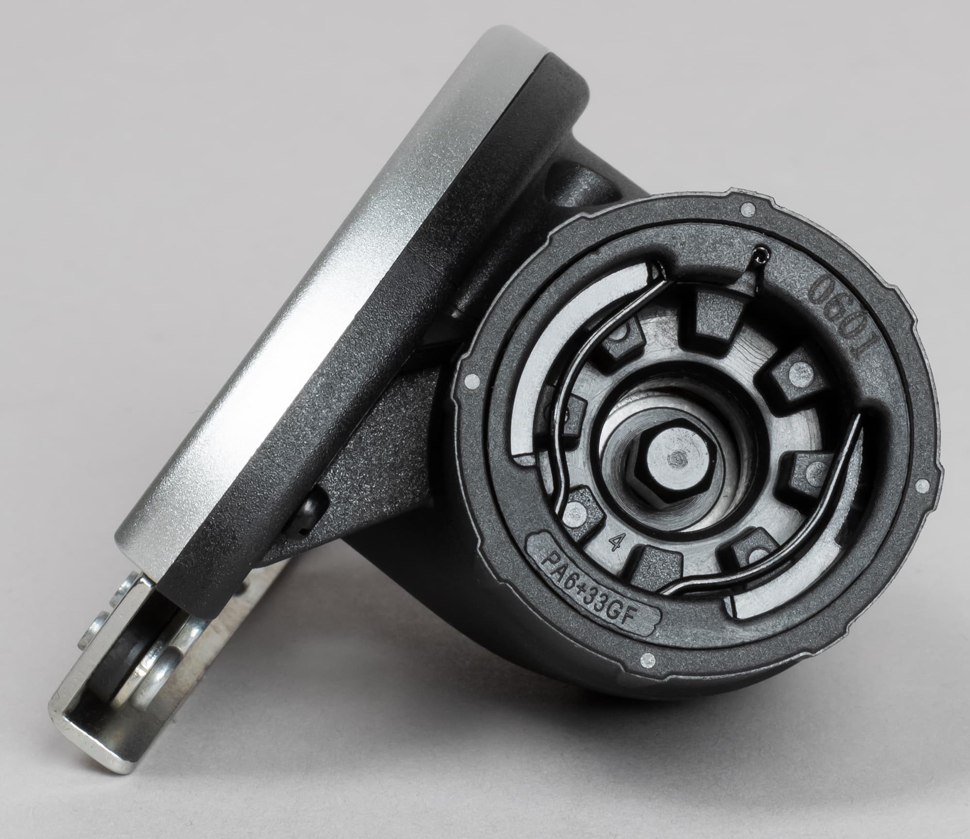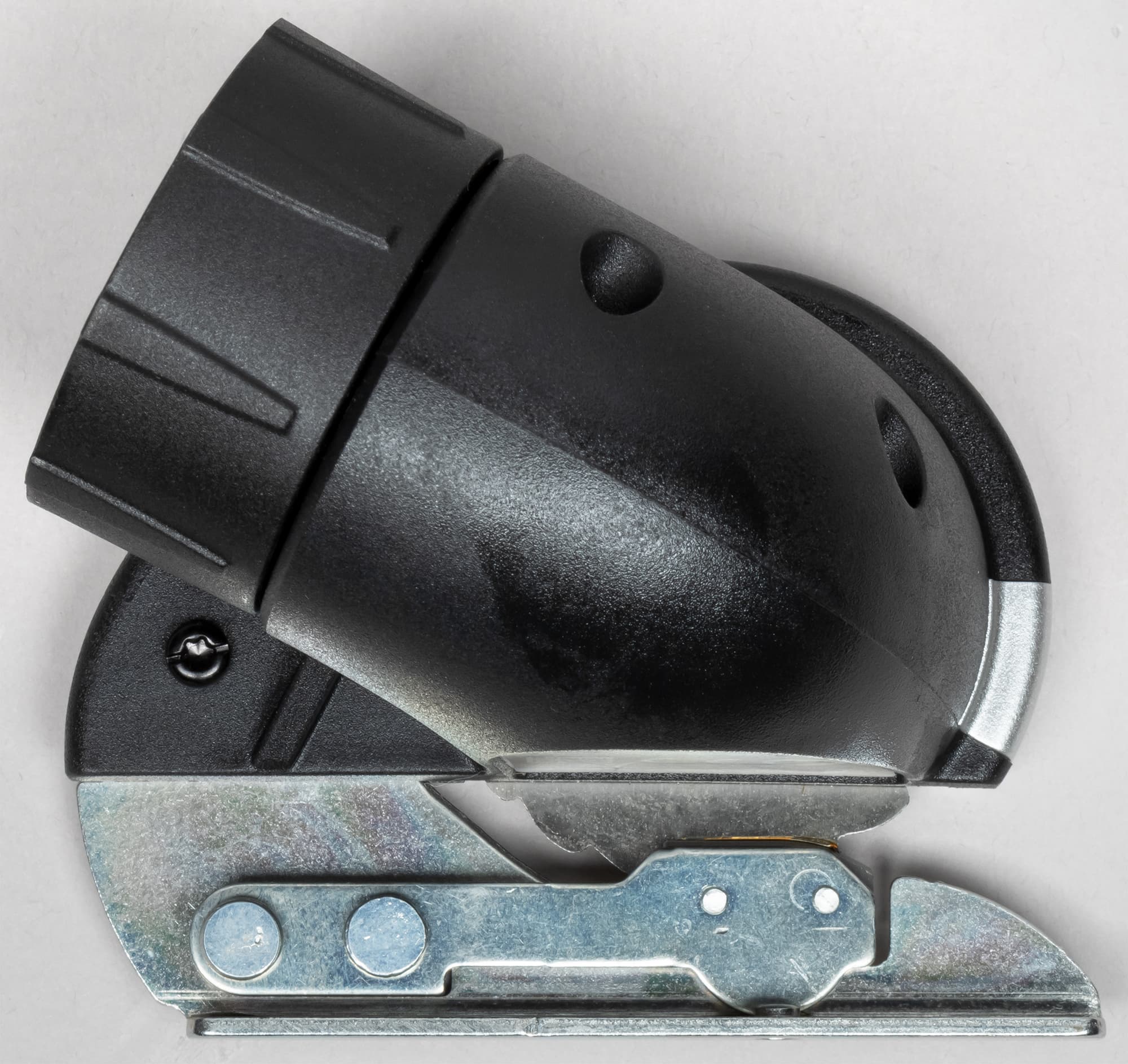 Со стороны монтируемой площадки внутри можно видеть зубья. Это стопоры, которые цепляются за неподвижную основу шуруповерта и фиксируют положение насадки, не позволяя ей вращаться. Если подсчитать количество стопоров, нетрудно понять, что насадке можно придать восемь разных положений.