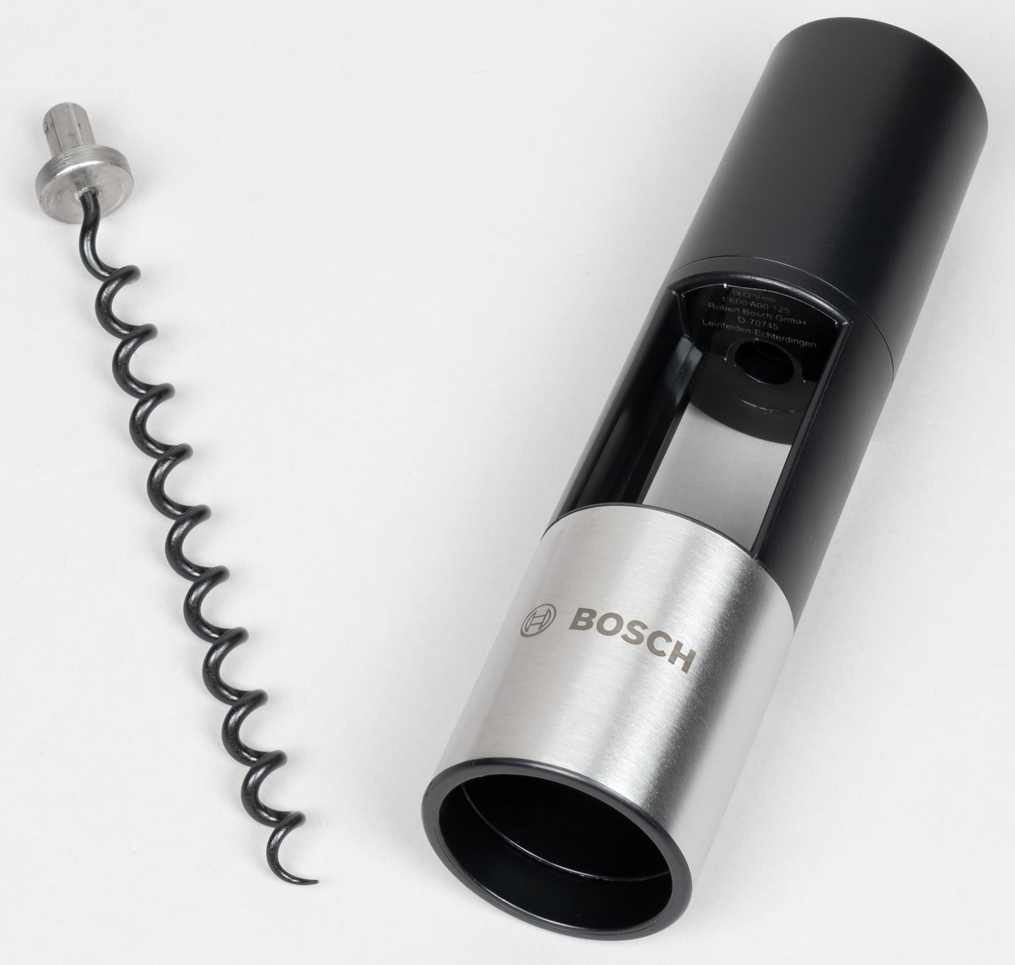 Конструкция насадки... Впрочем, какая тут может быть конструкция? Пластиковая трубка-муфта, обжатая металлом, который не дает пластмассе разлететься от давления горлышка бутылки, да собственно штопор — закаленная витая проволока диаметром 8,3 мм, покрытая черной пищевой эмалью.