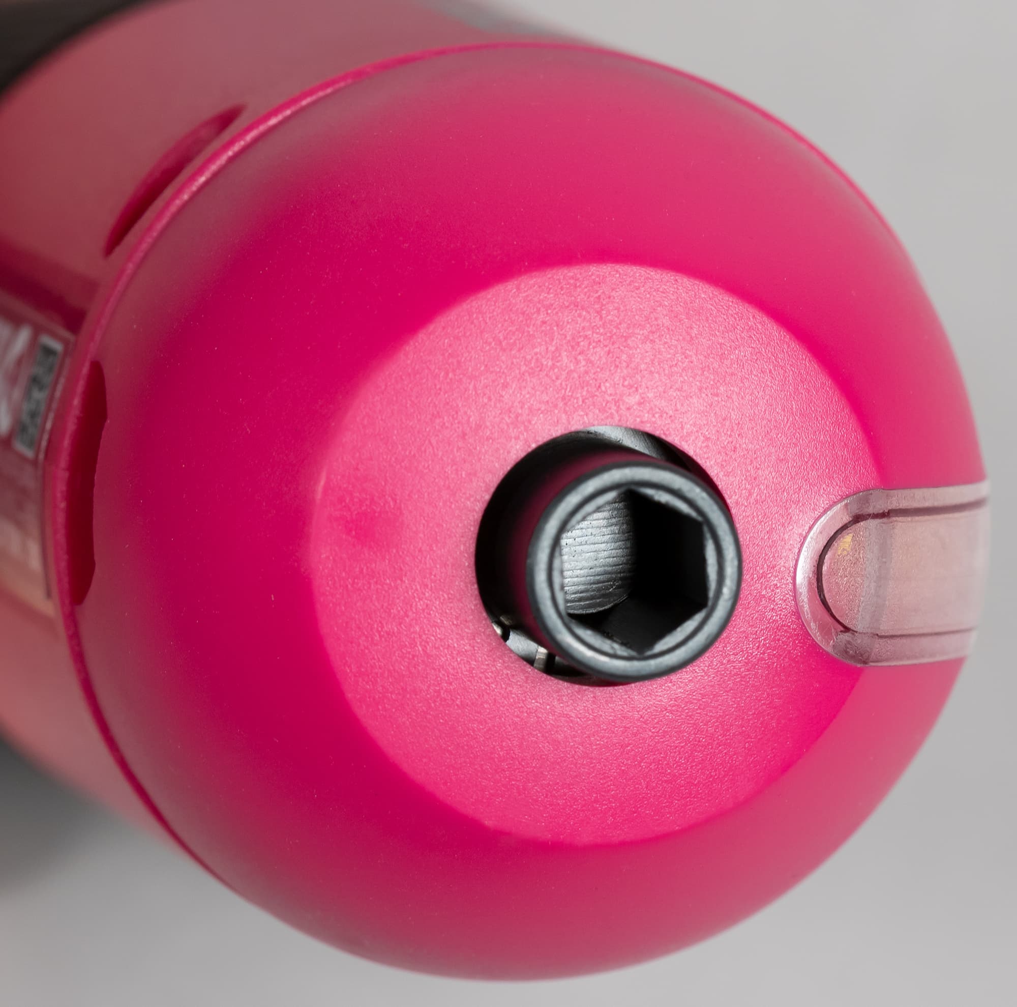 Глубина шестигранного углубления для установки биты составляет 11 мм, установленная бита удерживается мощным магнитом. Следует обратить внимание на подсветку. Мы впервые видим ручной инструмент пистолетного форм-фактора, в котором лампа подсветки находится не внизу, под шпинделем, а сверху. Но ведь именно такое расположение подсветки наиболее логично, поскольку во время работы мы видим область сверления или заворачивания именно сверху, а не снизу!