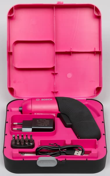 Никакого намека на классическую форму электроотвертки или шуруповерта. Правильно, так и должно быть в нишевом продукте. Он должен отличаться от распространенных инструментов аналогичного назначения. Формой, расцветкой и даже функциональностью. Все перечисленное здесь имеется: вместо рубленых краев — мягкие изгибы, вместо строгих рабочих тонов — розово-черный окрас. Ну а функциональность... Кто еще может сыграть восемь разных ролей, пусть и с помощью дополнительных насадок?