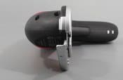 Регулировка крутящего момента («трещотка») у инструмента отсутствует, хотя этот вопрос решается одной из фирменных насадок. Единственный орган управления здесь, кроме главной кнопки включения — это переключатель направления вращения, реверс. Утопленная кнопочка легко сдвигается вперед-назад, тем самым изменяя направление вращения шпинделя. Никаких указателей на корпусе нет, но все очень просто: в положении Вперед шпиндель вращается по часовой стрелке, а в положении Назад — соответственно, против часовой. Среднего положения, блокирующего вращение шпинделя, здесь нет.