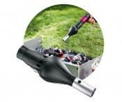 Стандартная таблица не учитывает возможность описания дополнительных функций. А они у каждого инструмента разные. Например, рассматриваемая отвертка-шуруповерт умеет превращаться в резак, штопор, кухонную мельничку, дрель, угловерт и даже в шашлычно-мангального помощника. Все эти забавно-полезные функции осуществляются с помощью фирменных насадок, которые приобретаются отдельно. Нам выпал случай поэкспериментировать с некоторыми из них.