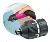 Шестигранный конец этой спирали вставляется в углубление шпинделя шуруповерта и удерживается в нем силой магнита.