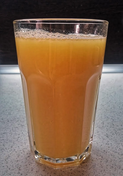 Результат: хорошо. Из килограмма апельсинов (с толстой кожурой, косточками и пленками) у нас получилось 700 г сока. Жмых, правда, был довольно влажным.