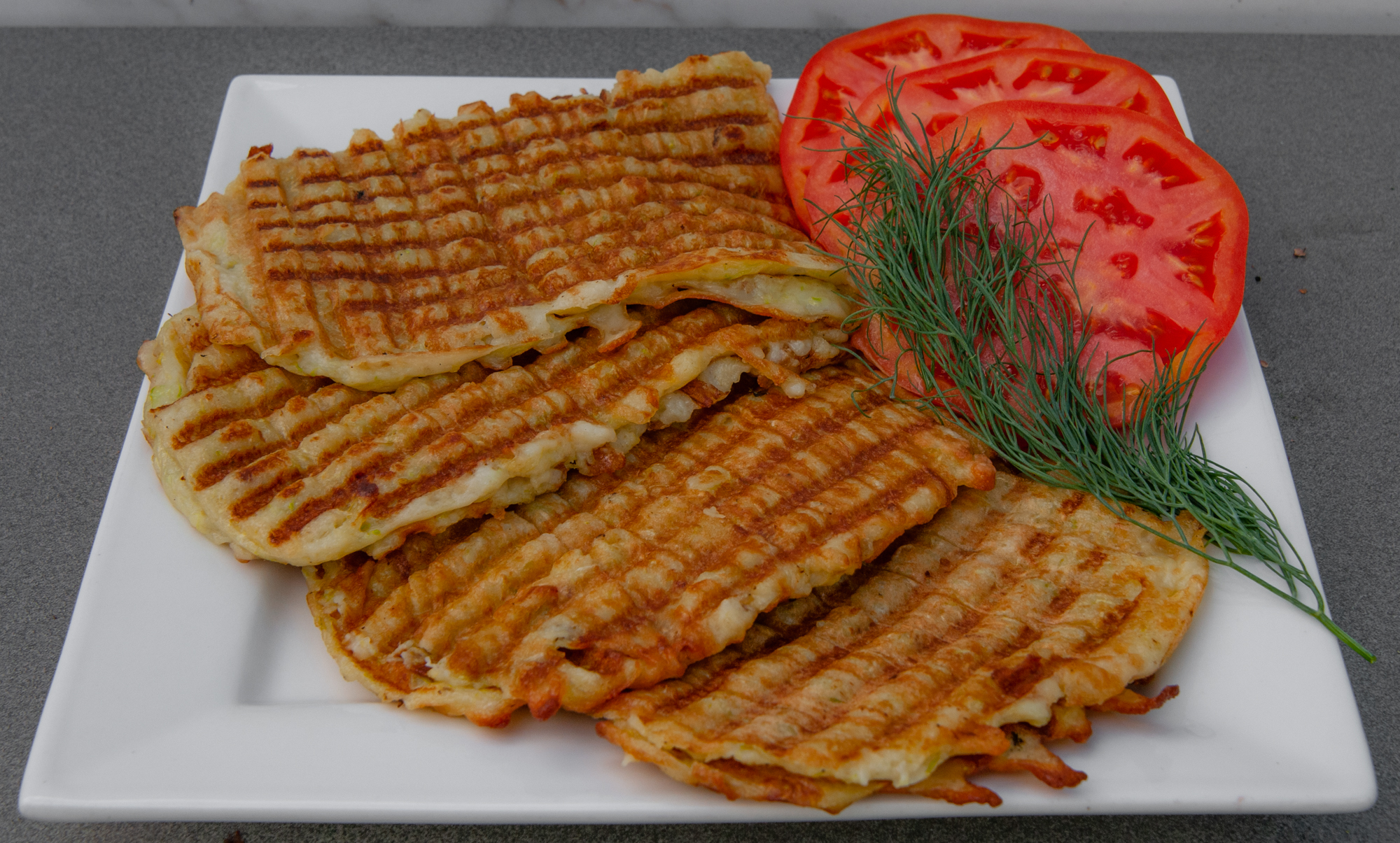 Целая чаша 3,9 л кабачковой массы у нас получилась за 3 минуты работы овощерезки! Отжали лишний сок, добавили муку и яйца, поджарили в гриле.