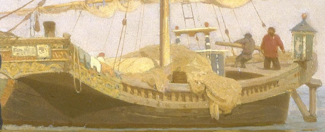 На одном из этих фото можно видеть деревянное изделие, напоминающее наличник. О-о-о, это интересная история. Давным-давно автор слышал версию, в которой утверждалось, что владельцы барж, использовавшие тягловую силу бурлаков, старались перещеголять друг друга в украшательстве своих суден. Для украшения использовался единственный доступный в то время материал: древесина. Кстати, на известной картине Ильи Репина можно видеть такую баржу. И на ней в самом деле присутствует немало резных узоров, особенно на носу и корме. Кто-то раньше обращал на них внимание? А Репин — обратил и запечатлел.