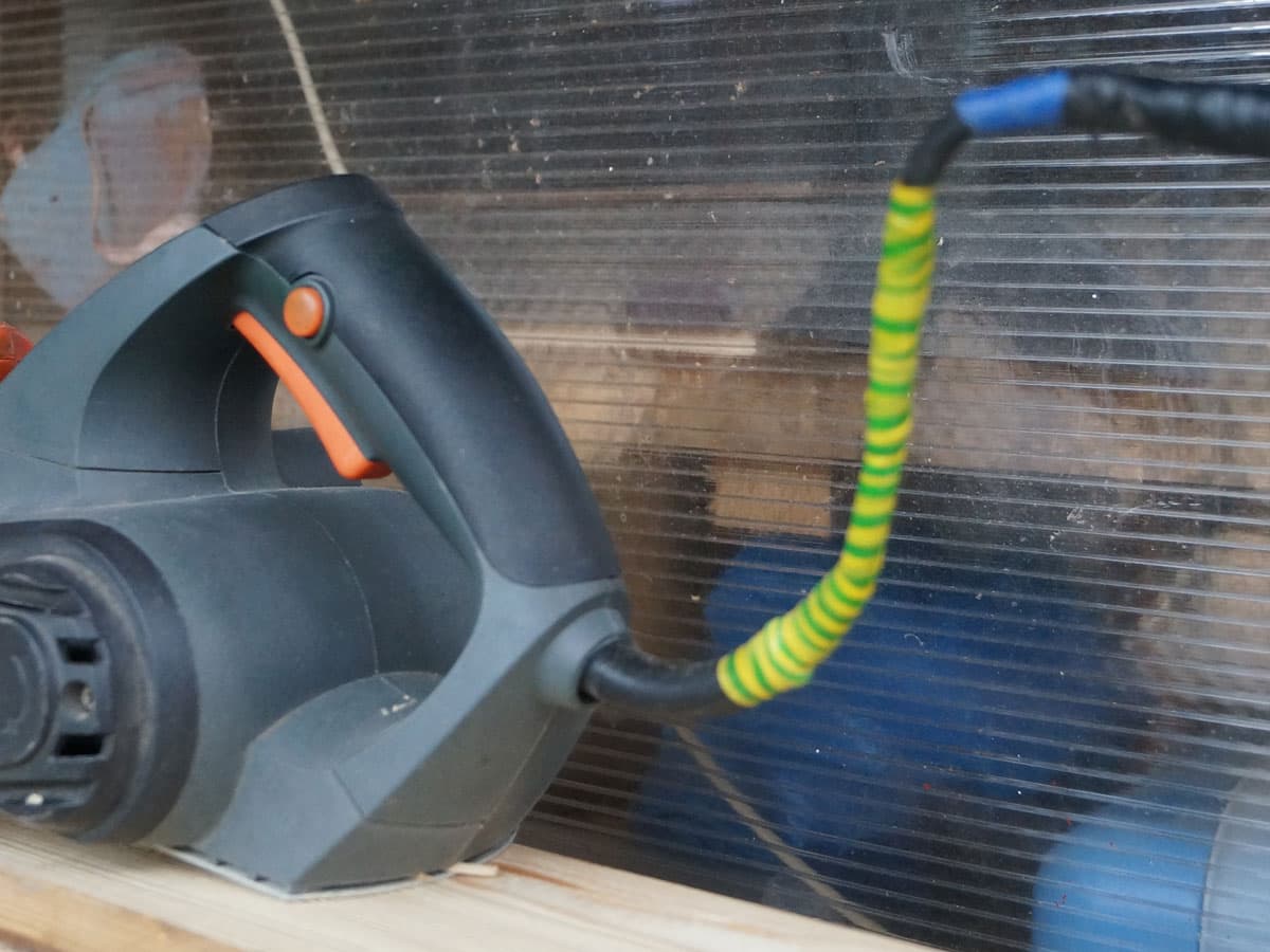 И это правильно. Зачем кабелю ползти по рабочей поверхности вслед за инструментом? Кабель вообще не должен касаться обрабатываемой поверхности. А длина кабеля? В нашем инструменте она составляет достойные 260 см. Казалось бы, фрезер — не рубанок, а инструмент в основном для статичной работы, им не ерзают по доске на два метра вправо и на три влево. Тем не менее, провод здесь достаточно длинный, чтобы работать подальше от розетки или переноски.