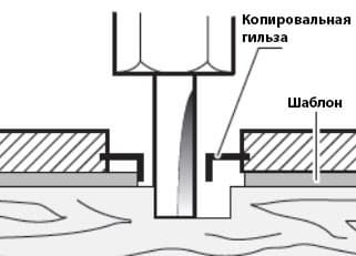 - толщина шаблона должна быть чуть больше высоты копировальной втулки (гильзы)