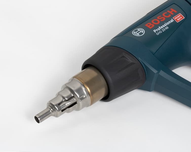 Целевое предназначение этой насадки — работа с трубами. Выступающая загнутая часть отражает часть воздушного потока, поэтому труба или иной протяженный предмет обдувается горячим воздухом сразу со всех сторон, что особенно ценно в том случае, когда доступ к трубе возможен только с одной стороны. С помощью этой насадки можно, например, отогревать замерзшую трубу, гнуть трубки из термопластичного материала, выполнять пайку труб, изолировать и жгутовать провода с помощью термоусадочных трубок.