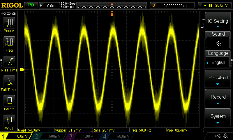 Осциллограммы напряжения на шунте ваттметра выявляют особенности работы нагревательного элемента. Вариантов всего четыре. Минимальный нагрев, постоянно включена маломощная секция нагревательного элемента (и работает вентилятор), мощная секция отключена, потребление порядка 200 Вт: