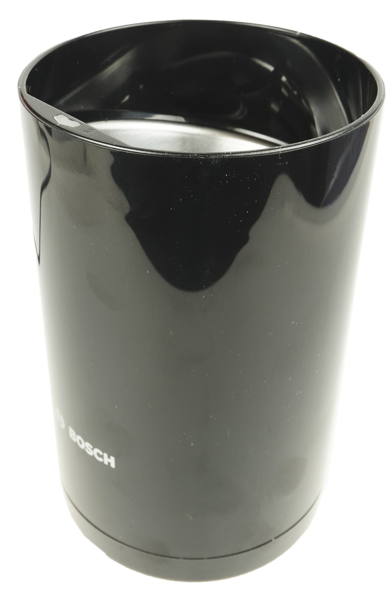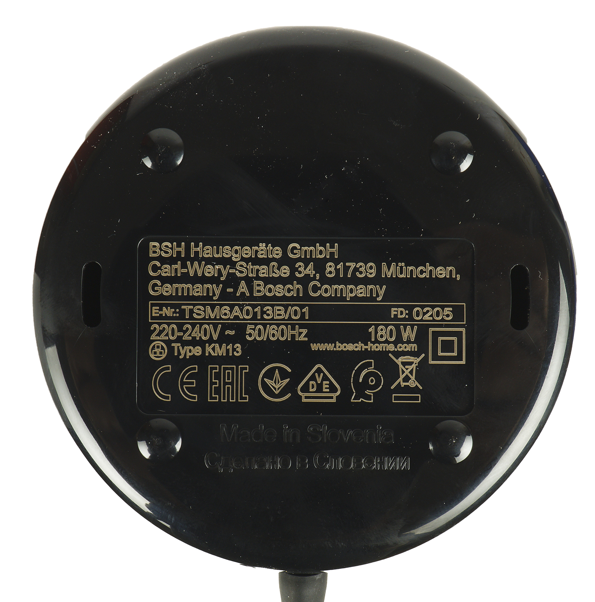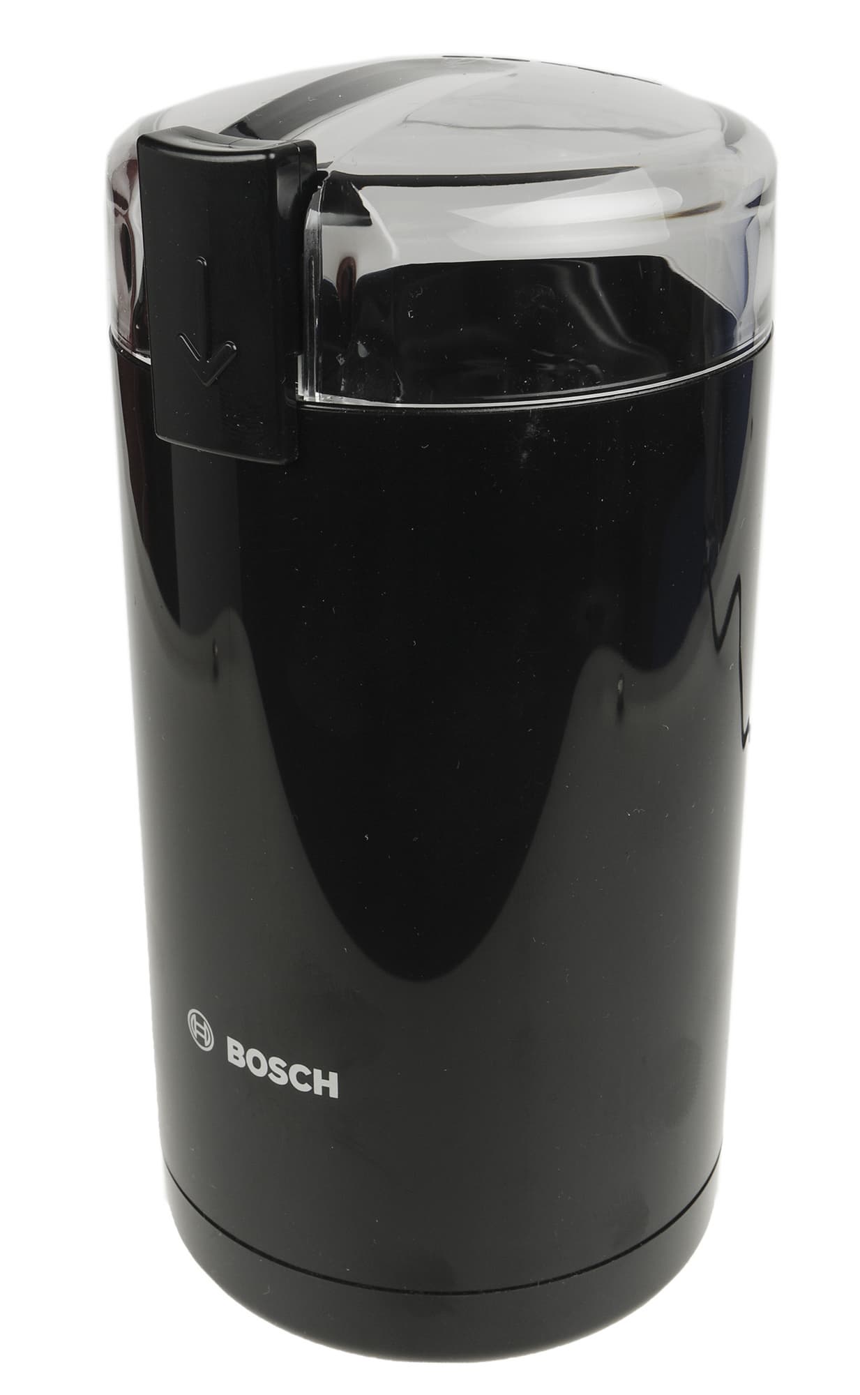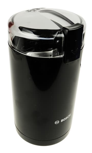 Корпус кофемолки Bosch TSM6A013B выполнен из глянцевого пластика черного цвета. Модель представлена также в белом, кремовом и красном цвете, так что пользователь может подобрать цвет, наиболее подходящий его вкусу или оформлению кухни. Конструкция стандартна для роторных кофемолок: моторный отсек, сверху которого встроена невысокая помольная чаша с ножевым блоком.