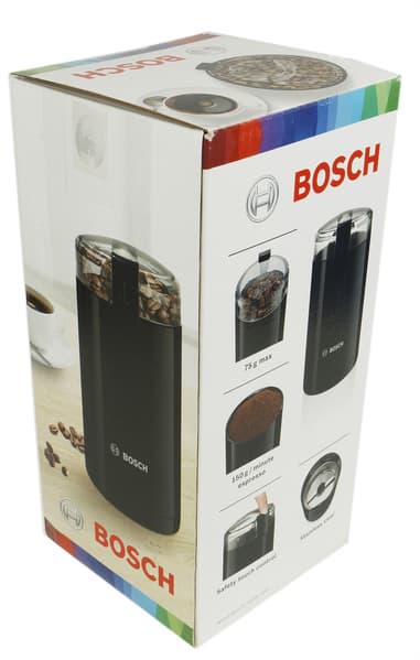 Кофемолка Bosch TSM6A013B произвела на нас приятное впечатление. Этот простейший прибор ротационного типа оснащен двухлопастным ножом из нержавеющей стали, вместительной помольной камерой и простым безопасным управлением. Прибор благородно и минималистично выглядит, а еще пользователь может выбрать нужный ему цвет корпуса — красный, бежевый, черный или белый.