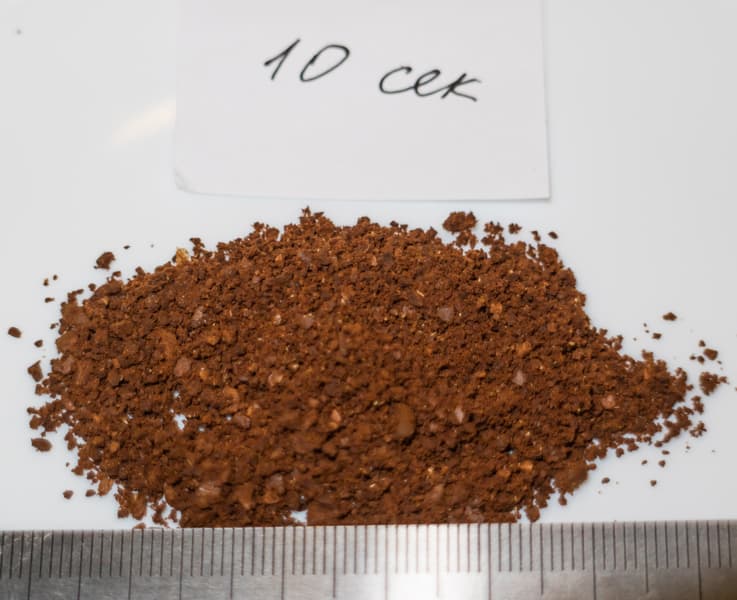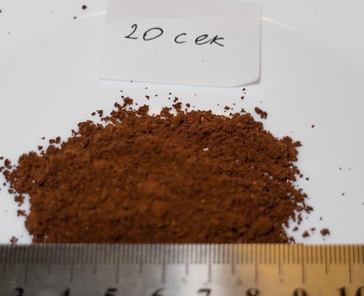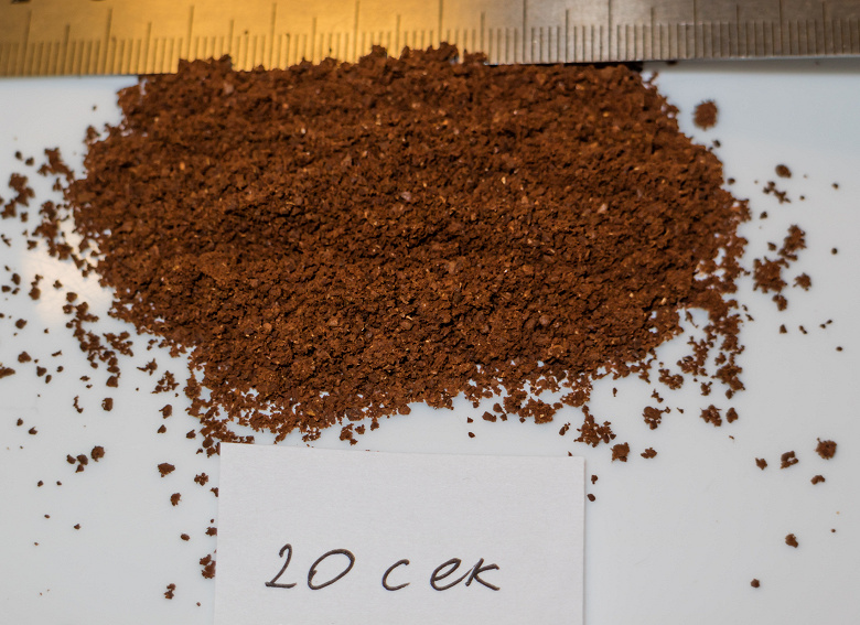 На 20-й секунде помола кофе выглядел уже достаточно хорошо: фракции стали равномернее по размеру.