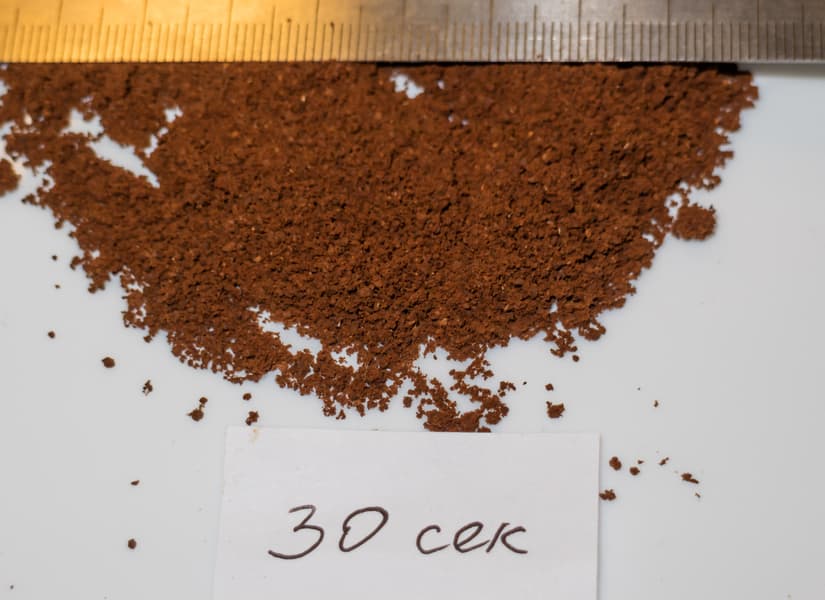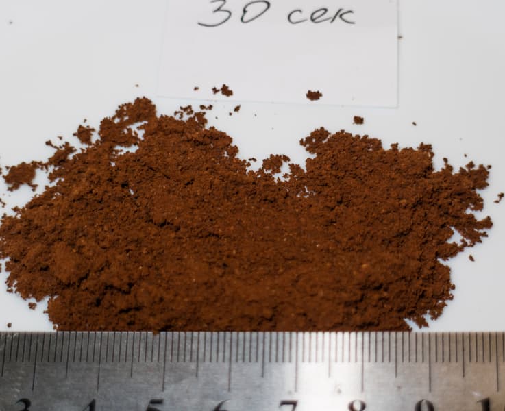 Рекомендуемые 30 секунд помола привели к хорошему результату: кофе прессуется, помол мелок.