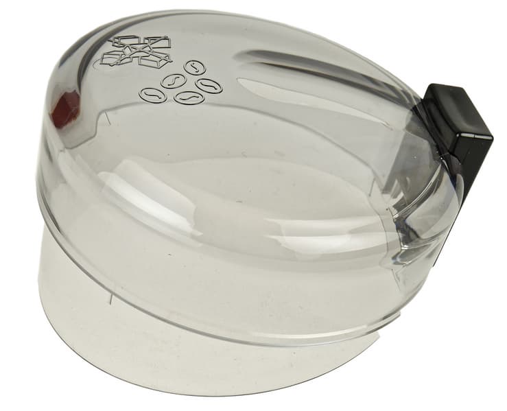 Закрывается корпус крышкой, изготовленной из прозрачного затемненного пластика. На крышке имеется выключатель — деталь черного цвета, которая перемещается вверх и вниз в пределах выделенного отсека. Сверху нанесена подсказка о предназначении прибора: зерна молоть можно, а вот лед — нет.