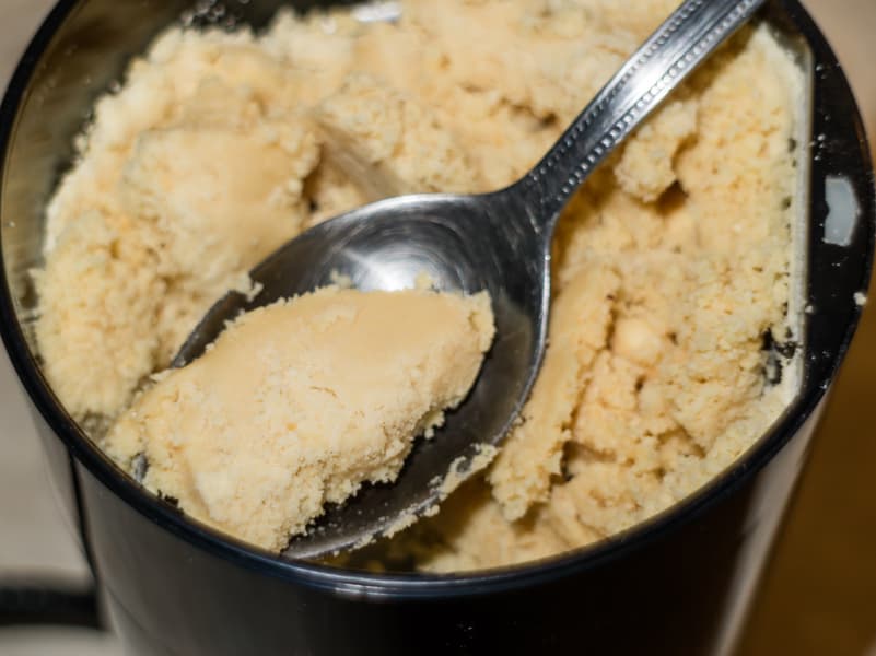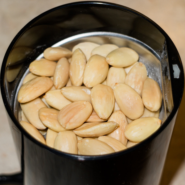 50 г очищенного и подсушенного в духовке миндаля заложили в помольную камеру.