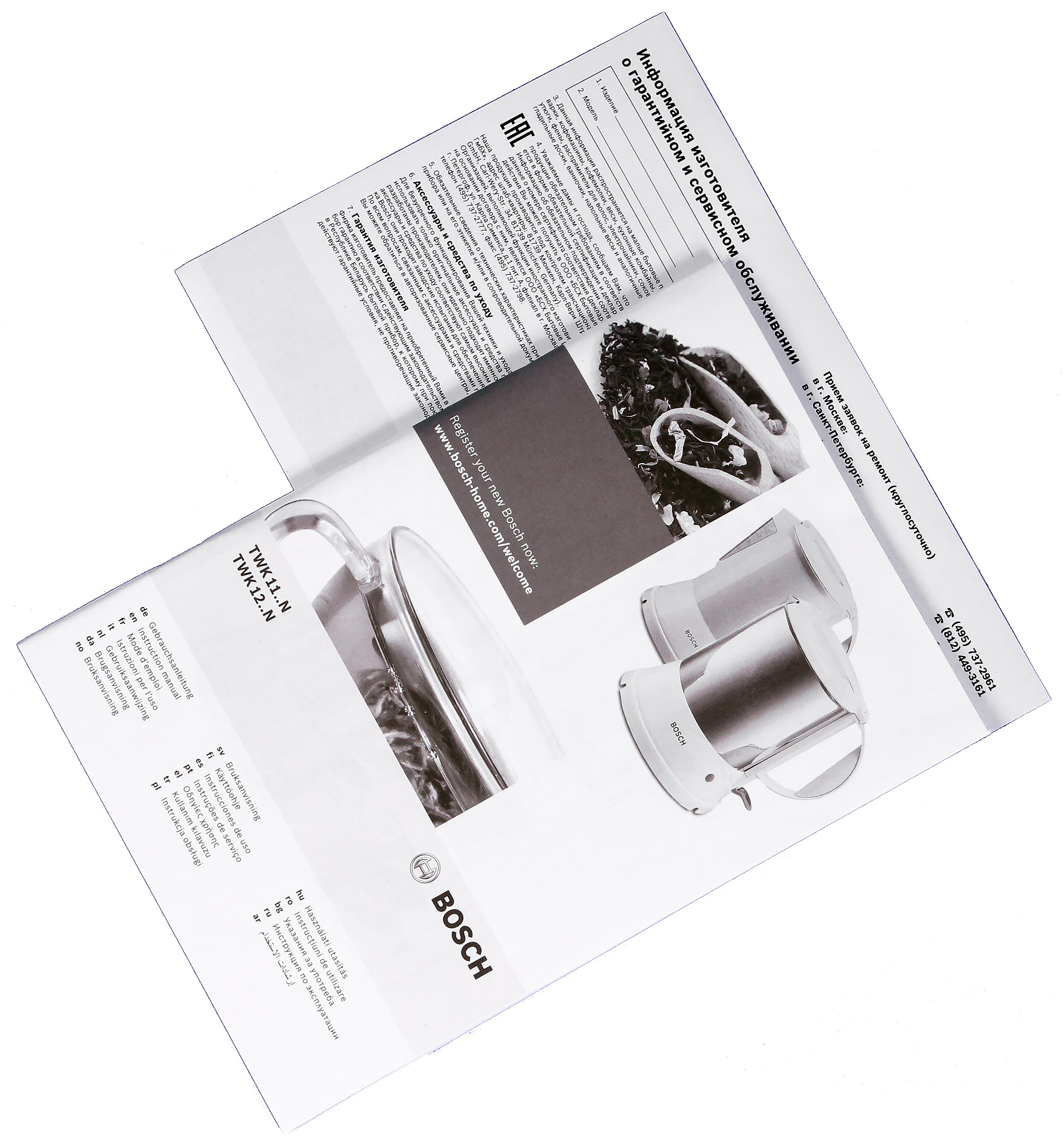 Инструкция к чайнику представляет собой черно-белую брошюру формата А5, отпечатанную на обычной матовой бумаге. На долю русского языка приходится 4 страницы, изучив которые можно узнать всевозможные полезные сведения. Например, что в чайнике нельзя подогревать суп. Или что прибор сильно нагревается во время использования. Или что напитки типа чая и кофе окрашивают внутренние стенки чайника.