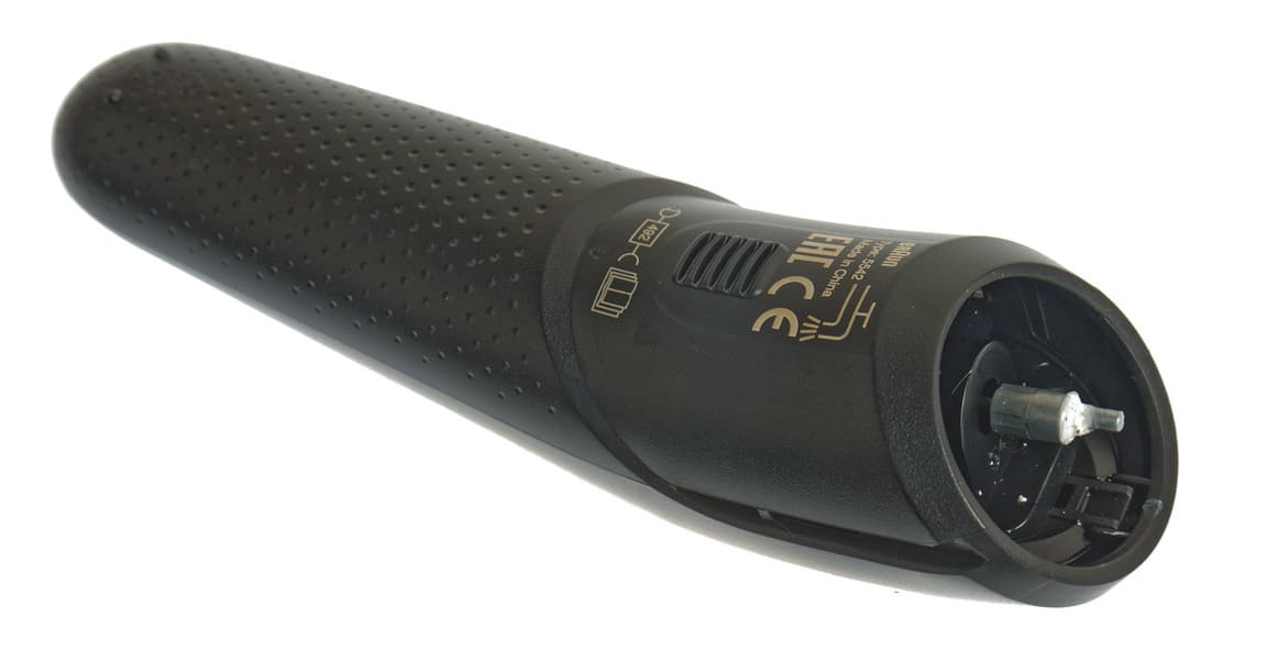 В нижней части триммера расположен разъем зарядного устройства — два металлических штырька-контакта.