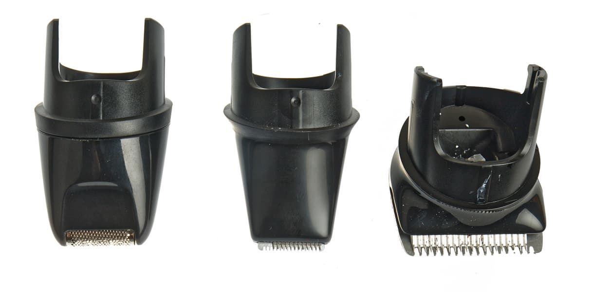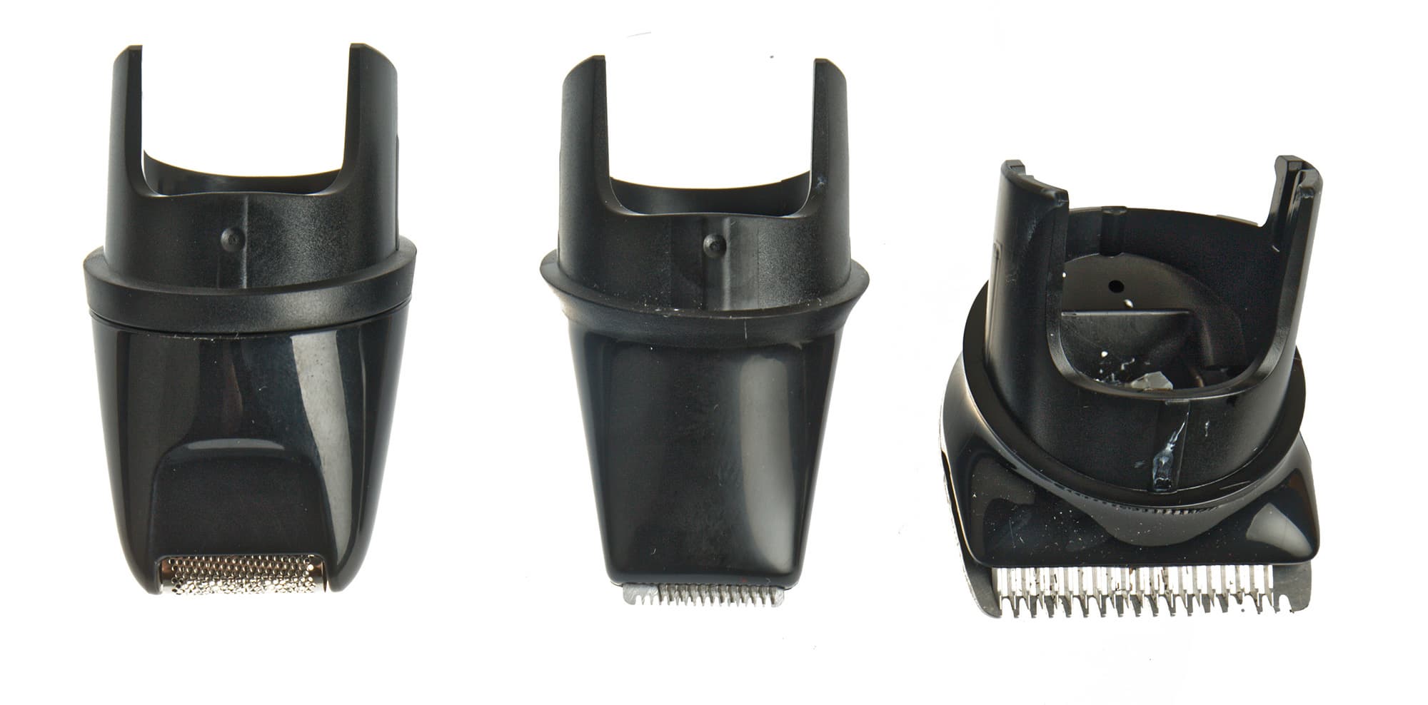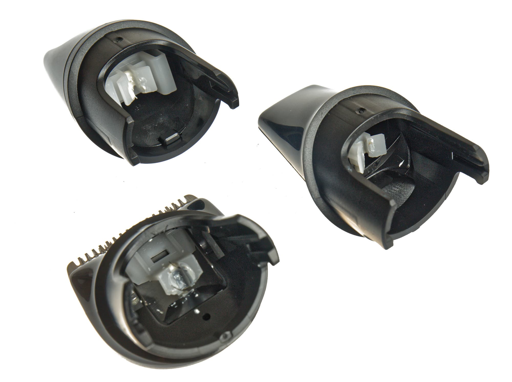 Насадки для стрижки и бритья устанавливаются вместо ножевого блока и используются независимо от крупных гребней.