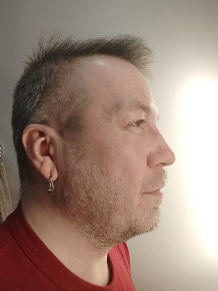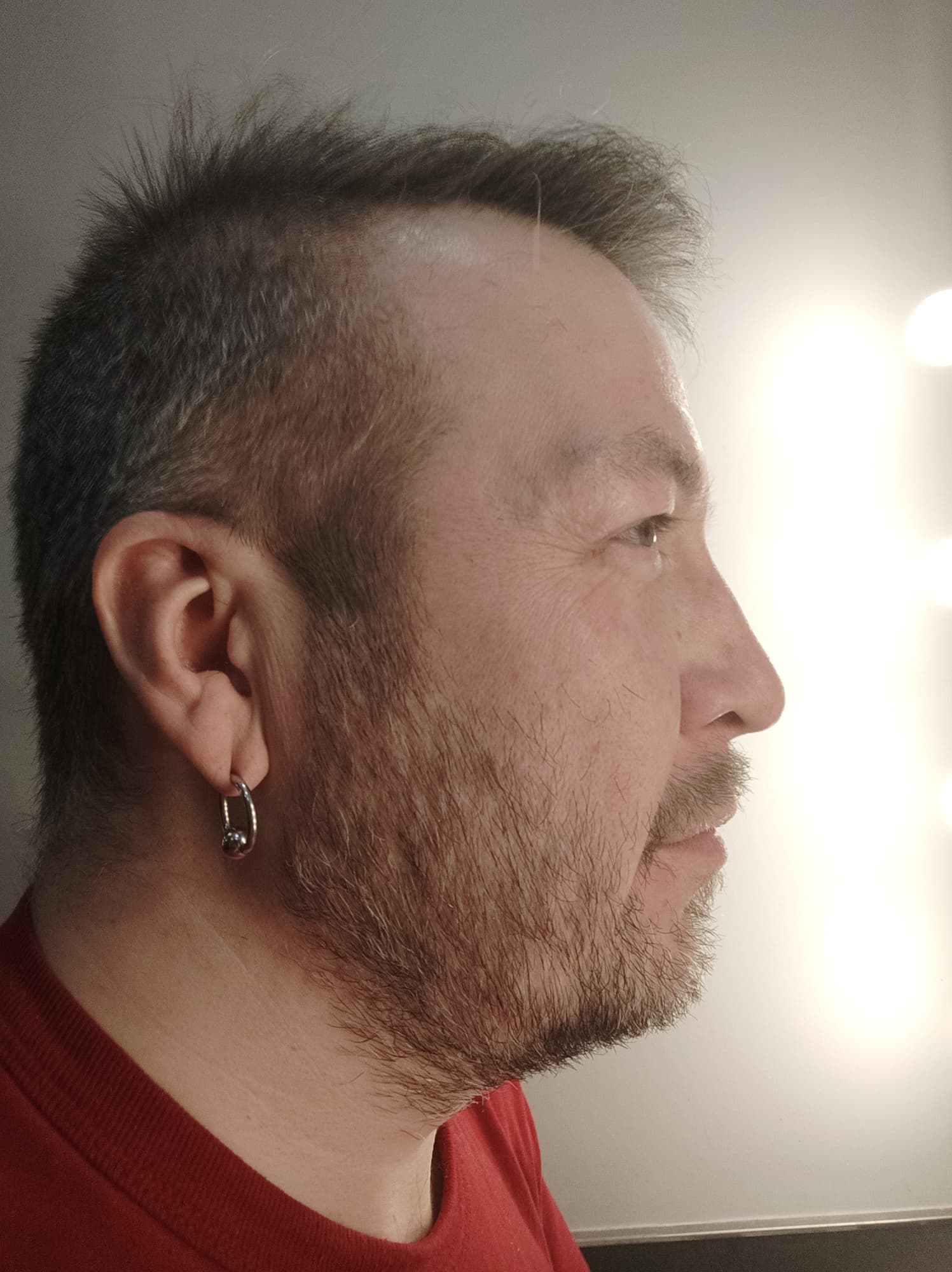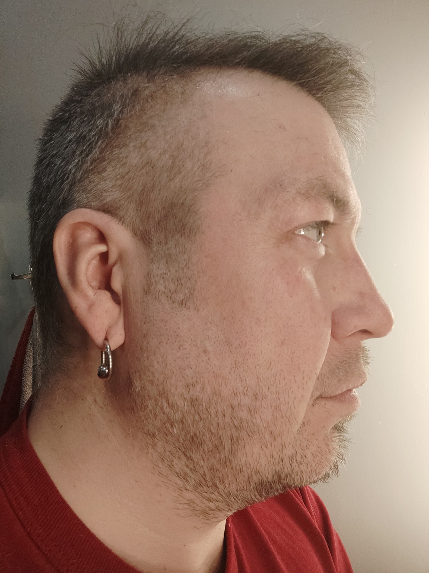 Также мы укоротили щетину непосредственно под бакенбардами. На фото ниже явно виден переход от обработанной области к щетине длиной 1 мм.