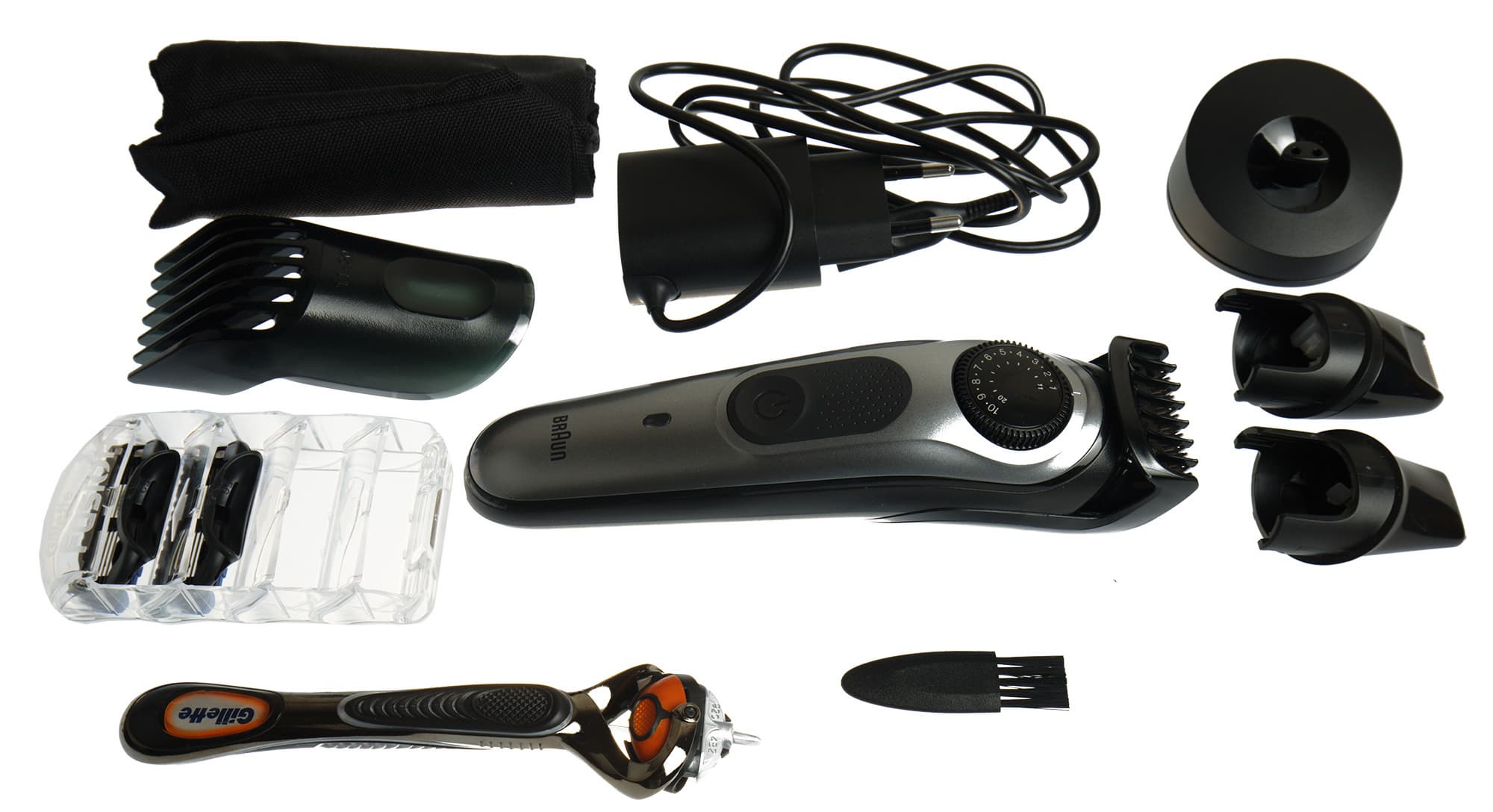 Braun BT7240 — одна из старших разновидностей триммеров Braun для бороды, отличающаяся расширенной комплектацией: в коробке с устройством мы найдем два гребня для стрижки, две дополнительные насадки (триммер и насадка для точного бритья), а также док-станцию и мешочек для хранения аксессуаров.