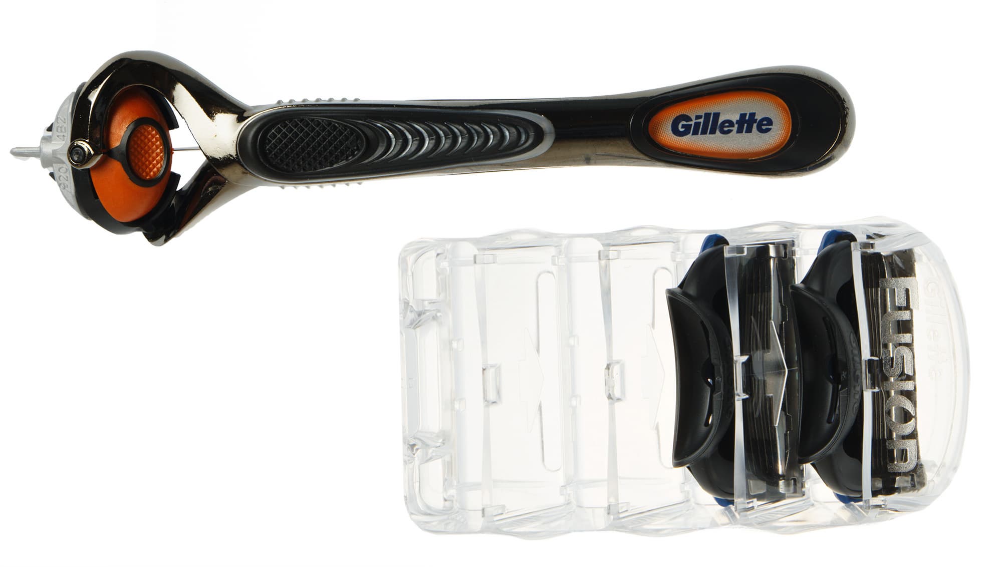 Бритва Gillette Fusion ProGlide, входящая в комплект, совершенно стандартная — кассеты к ней оснащены пятью лезвиями, а конструкция бритвы допускает наклон головки вправо либо влево. Кассеты оснащены дополнительными микрогребнями, которые направляют волоски для комфортного бритья. Лезвия, расположенные близко друг к другу, а также точный триммер с обратной стороны позволяют добиться высокой точности при бритье.
