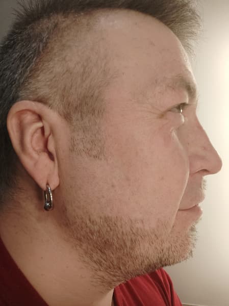 Сначала мы обработали щеки (там попадаются отдельные волоски) и область под бакенбардами.
