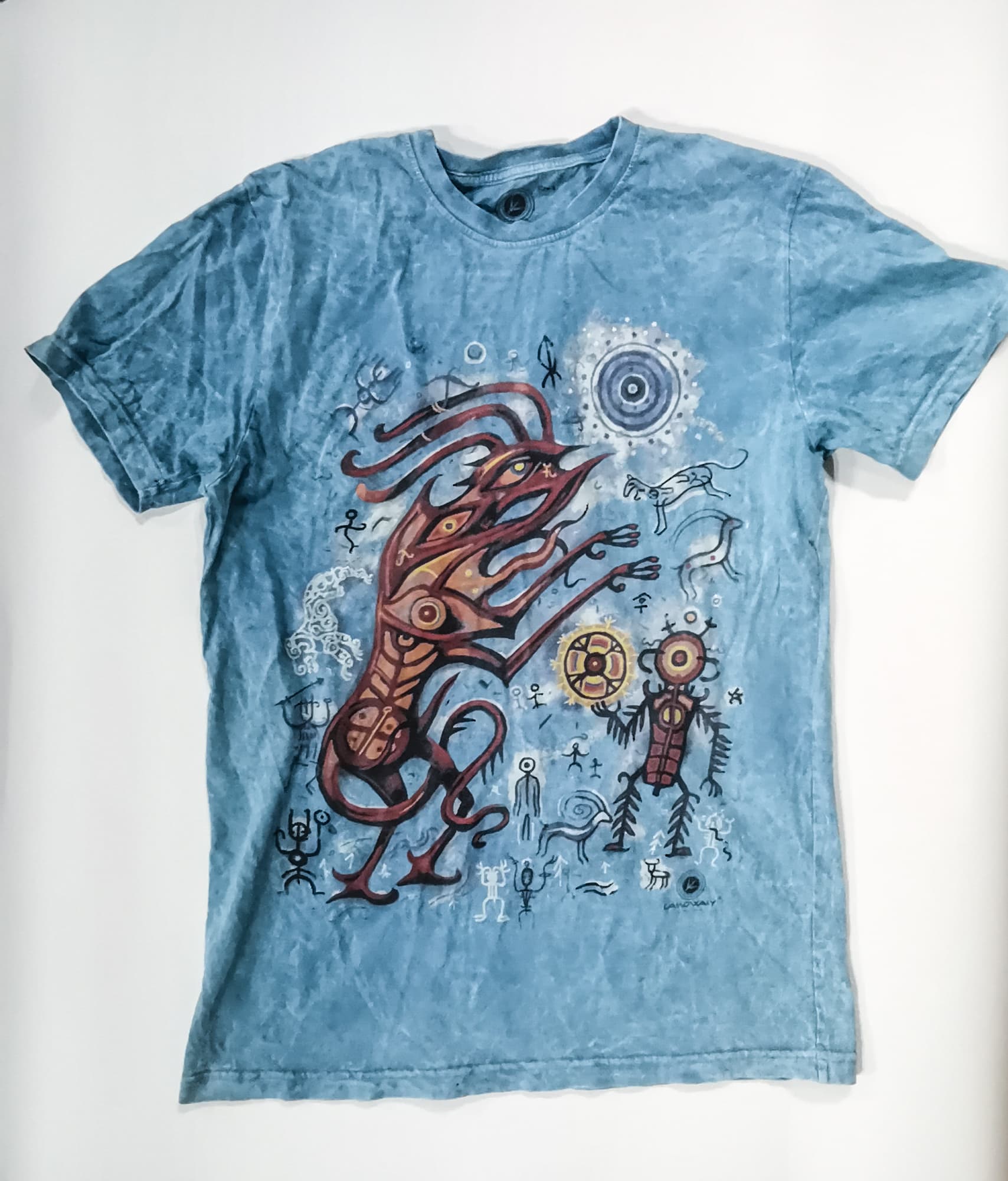 Мы взяли две выстиранные и высушенные футболки с разным типом нанесения принта. В первом случае это рисунок-термоапликация, во втором — шелкография красками на водной основе. Нашей задачей было прежде всего понять, как поведет себя принт при отглаживании с помощью Braun CareStyle 3 Pro.