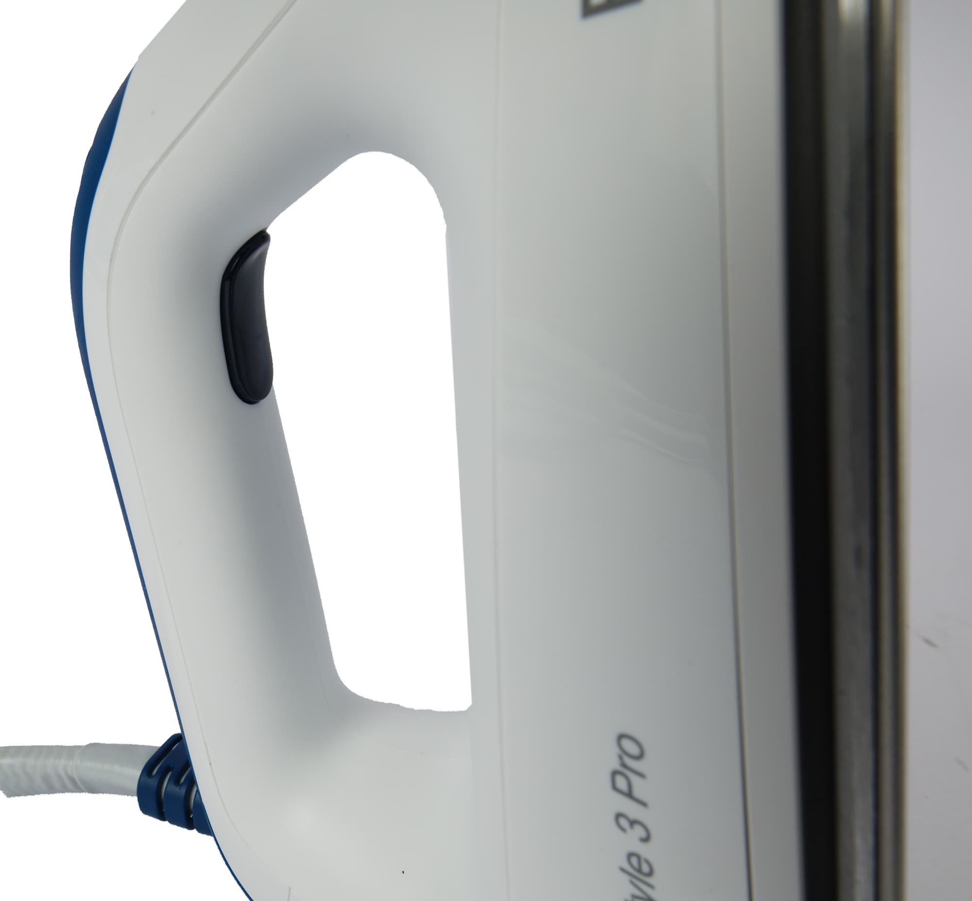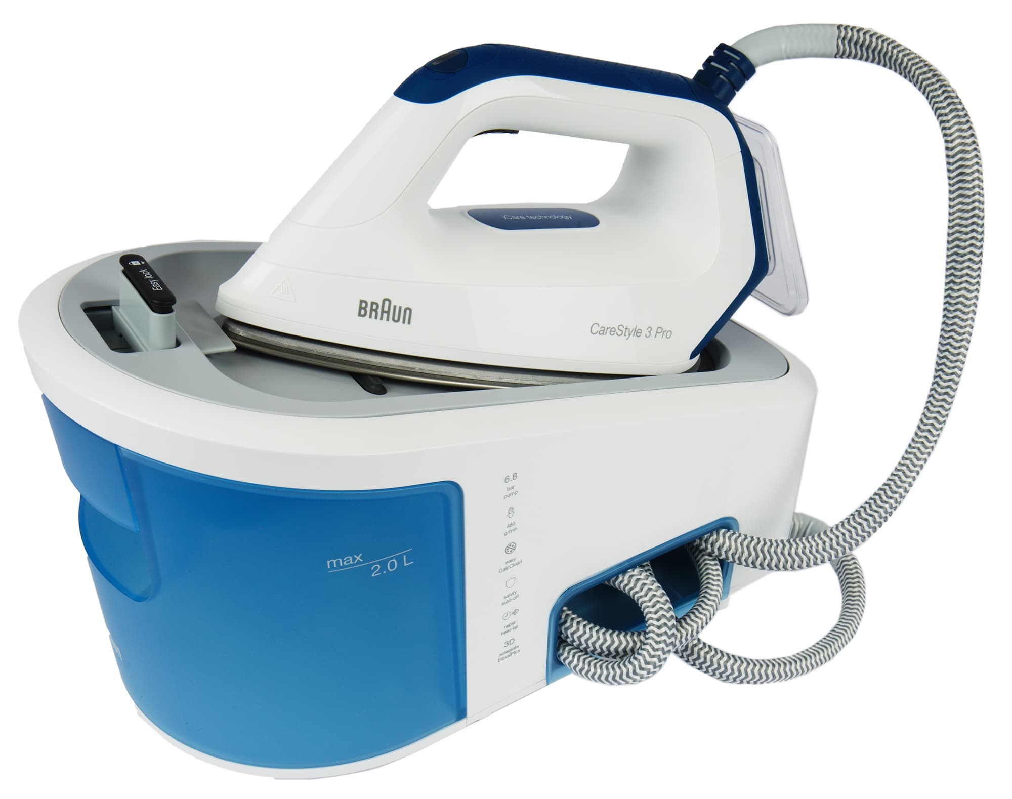 Braun CareStyle 3 Pro понравился нам своей высокой производительностью, продуманным весом утюга, отличной удобной подошвой, большой емкостью для воды. Прибор оснащен всеми необходимыми функциями: регулировкой температурных режимов, паровым ударом, возможностью использовать утюг для вертикального отпаривания, удобной подошвой Eloxal Plus, программой автоматического отключения и защитой от брызг. Это устройство значительно облегчит работу по глажке и отпариванию большого объема постельного белья, вещей изо льна и сложных тканей, портьер, сценических костюмов.