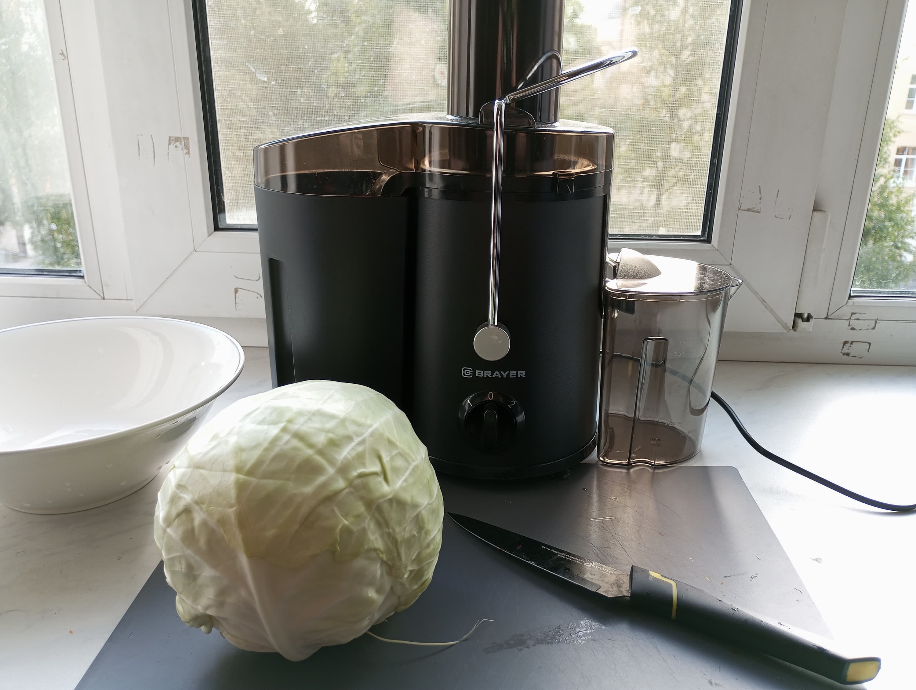 Мы распаковали Brayer BR1702, убрали упаковочные материалы, внимательно прочли инструкцию. После провели комплектацию, провели тренировочную сборку/разборку прибора, осмотрели на наличие повреждений и промыли теплой водой все детали, кроме моторного блока. Нашли удобное место, и приступили к подготовке овощей и фруктов к тестам.