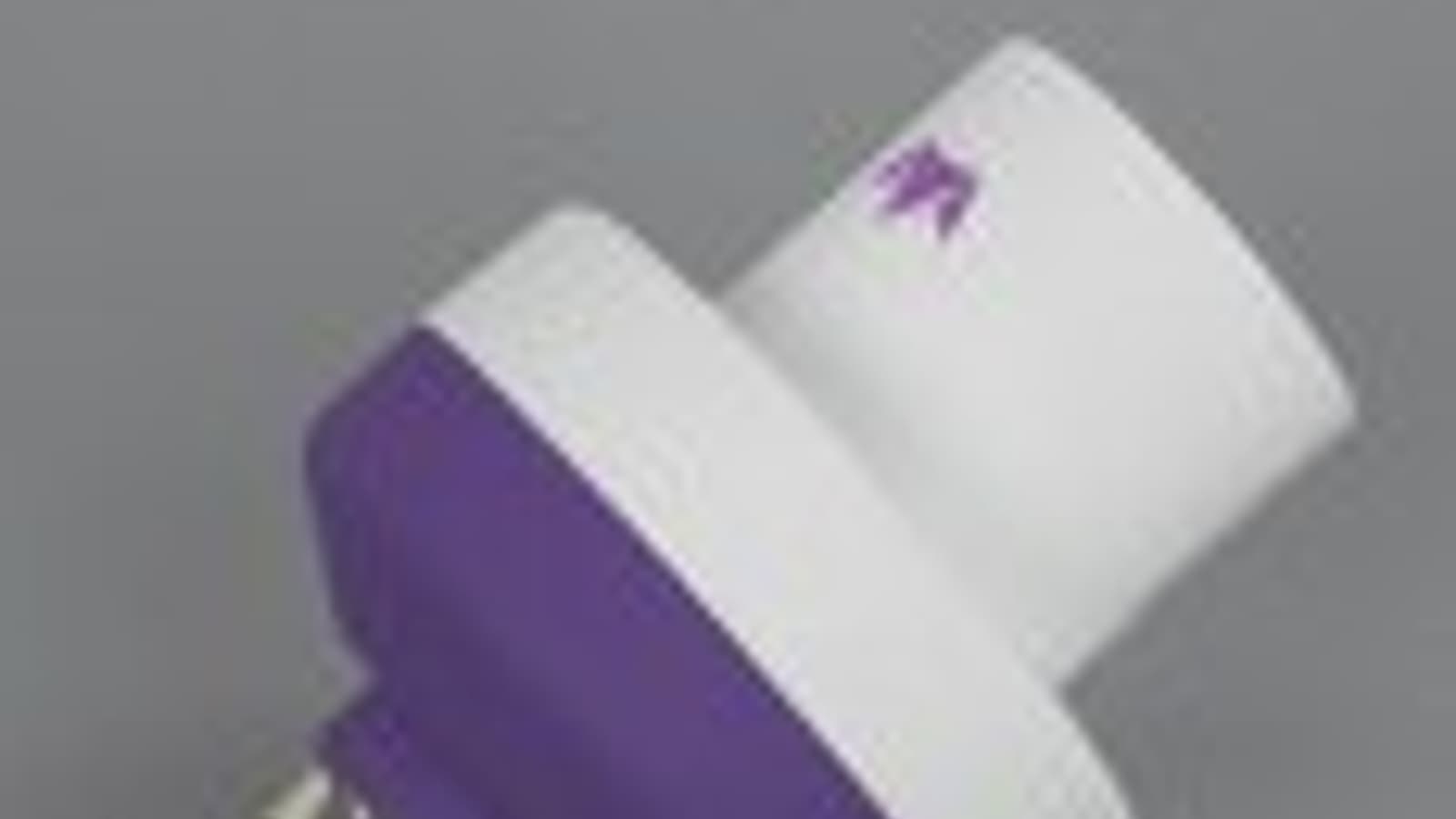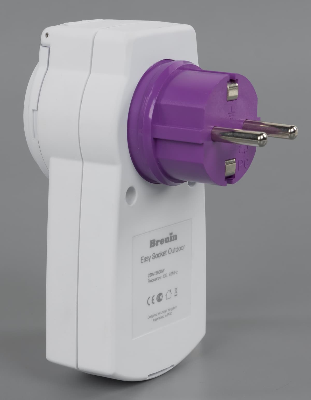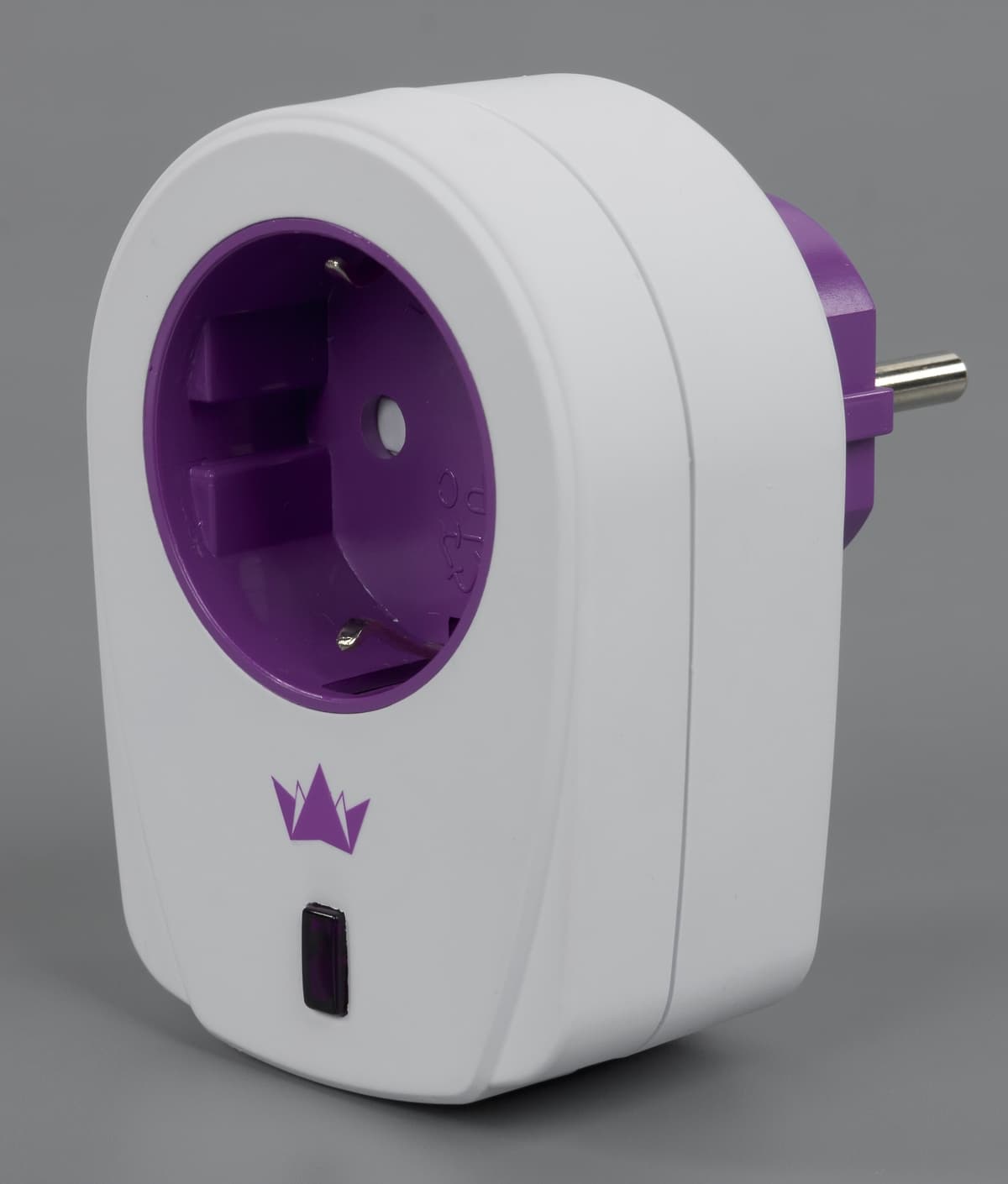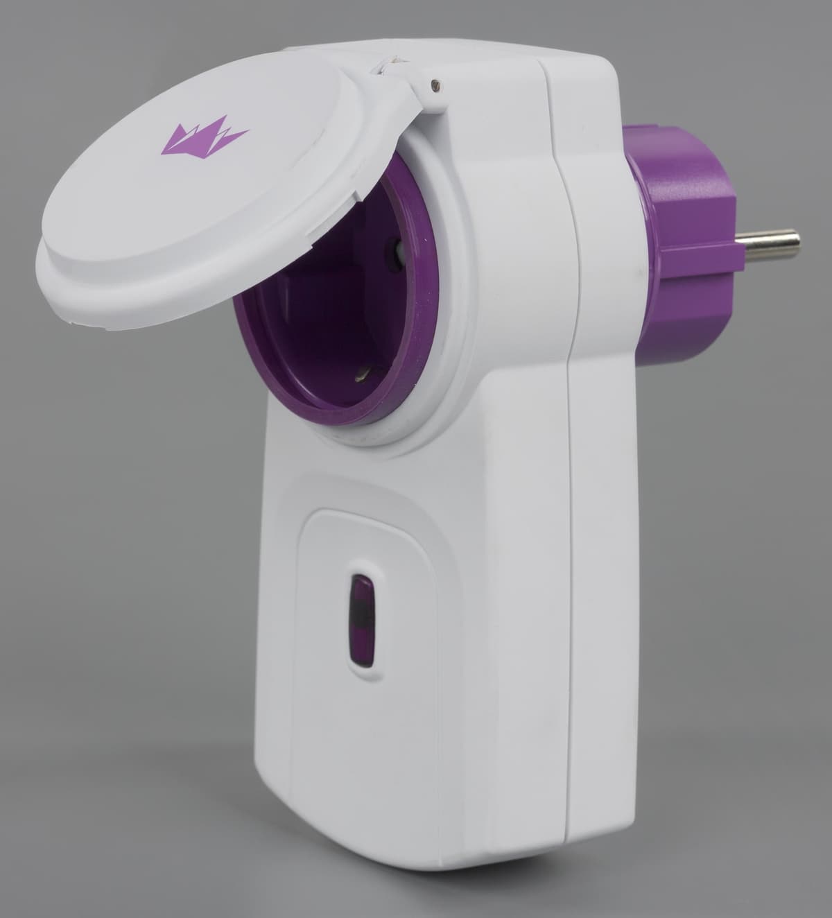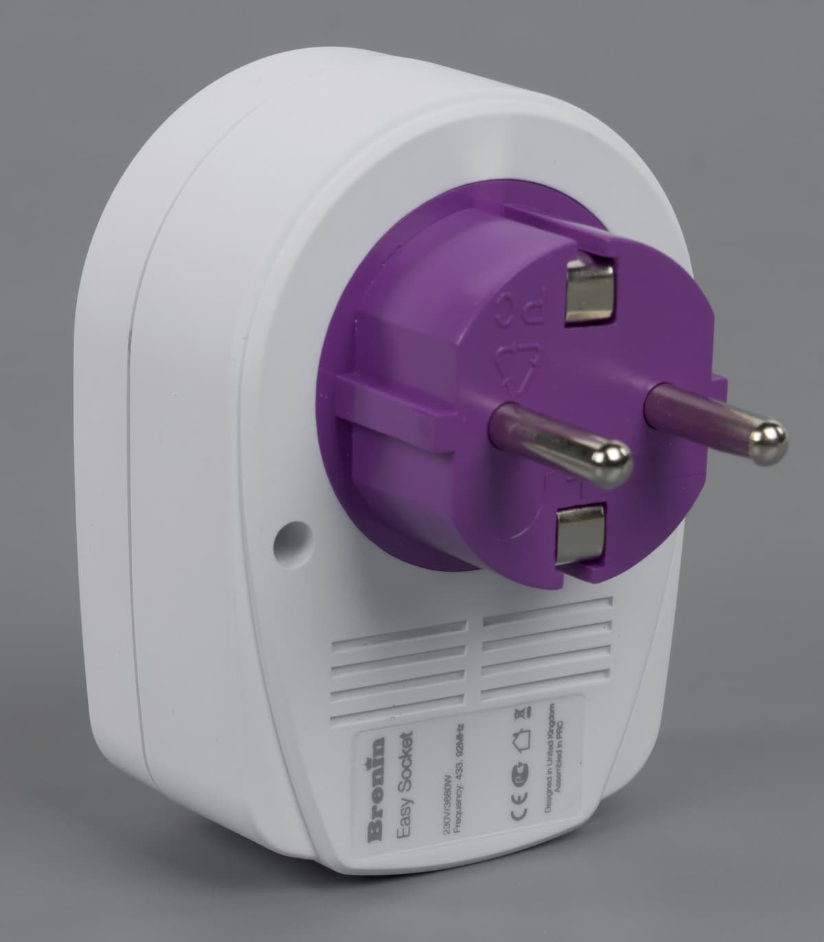 Первое устройство — Easy Socket — имеет относительно небольшие габариты (60×35×84 мм без учета вилки) и рассчитано на использование с евророзетками. Корпус изготовлен из пластика, имеющего матовое и глянцевое покрытие. Цвета выбраны соответствующими фирменным для производителя — белый и фиолетовый.