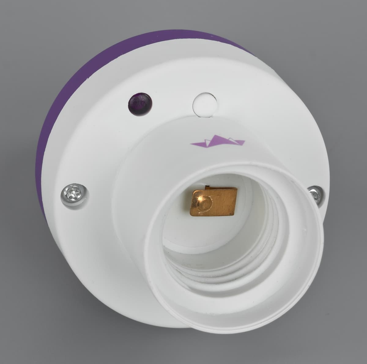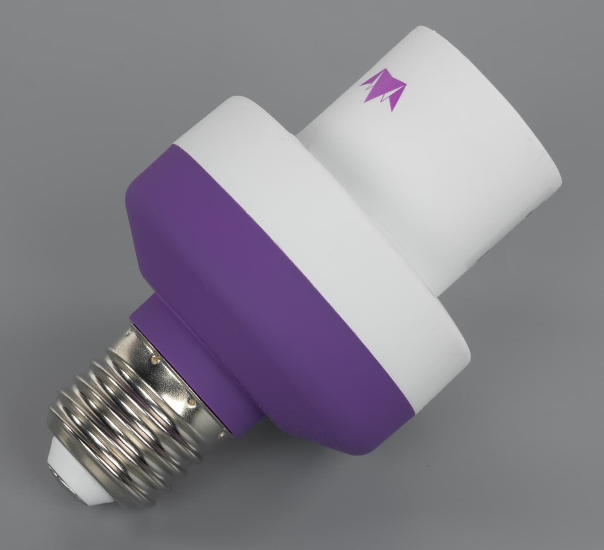 Правда здесь надо отметить, что такой вариант патрона и ламп накаливания сегодня становится все менее актуален. Корпус устройства изготовлен из матового белого и фиолетового пластика. Максимальный его диаметр — 62 мм. При подключении через патрон лампа поднимается примерно на 70 мм.