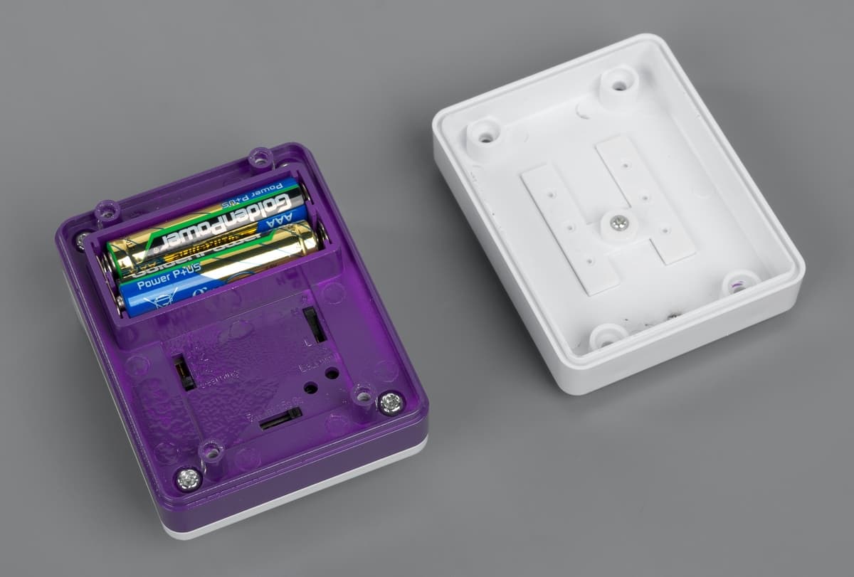 Тем более, что пластик используется явно не самый простой. Для установки батарей (2×AAA) и доступа к описанным выше для комнатной модели трем регулировкам нужно открутить четыре винта и открыть корпус.